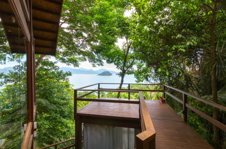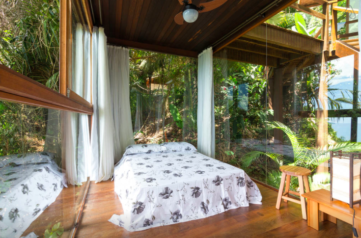 Cette cabane de luxe peut accueillir jusqu’à huit personnes avec ses 4 chambres et autant de salles de bains. En bois et toute en vitres, cette maison perchée dans la jungle est très lumineuse. Ses terrasses offrent de magnifiques vues sur l’océan, et 10 minutes à pied suffisent pour atteindre une belle plage de sable blanc. Façon Robinson Crusoe, on se réveille la tête dans les feuillages, et nos yeux encore endormis peuvent admirer le soleil qui se lève à l’horizon. Cette cabane brésilienne est idéale pour des vacances entre amis. Un vrai coin de paradis.