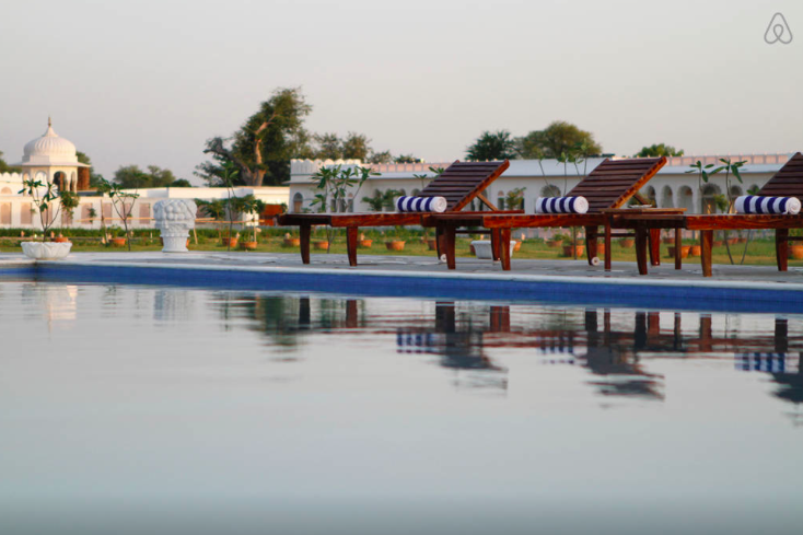 Ce très beau château propose une expérience exceptionnelle: séjourner au milieu de la campagne indienne dans une luxueuse demeure digne des plus grands princes. La propriété s’étend sur 150 hectares pour des balades à cheval, à dos de chameau ou en jeep. La piscine est immense et les jardins sont superbes. Situé à seulement 55km de la belle Jaipur, le château offre confort et modernité, avec accès internet et service de portier. Le mélange du luxe et du rural résulte en une ambiance authentique et magique..! On aimera aussi explorer les environs et visiter les temples et les chutes d’eau. Unique.