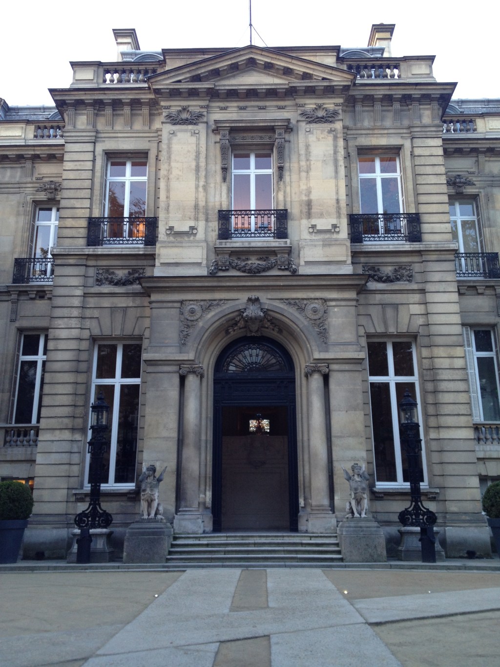 C’était un matin de fin d’automne, un de ces matins qui annoncent l’hiver, où le vent s’invite dans les branches des arbres et les déshabille nonchalamment d’un coup de tourbillon et vient se reposer au sol entre nos jambes qui trottinent vite le long des grandes avenues parisiennes en quête d’abri et de quiétude. Et c’est ainsi que nous avons trouvé refuge à l’Hôtel Salomon de Rothschild, rue Berryer. Traversant la cour à toute allure, prenant tout juste le temps de jeter un coup d’œil à la rotonde Balzac qui trône sur le côté, immobile et fière malgré l’air glacial, nous pénétrons dans le hall et montons le double escalier d’honneur orné d’énormes pots de fleurs blanches. Enfin, à l’abri, dans le saint des saints. En effet, c’est dans une petite pièce dérobée dans l’aile gauche de l’hôtel que nous nous engouffrons dans un couloir minuscule feutré et tapissé de velours rouge sans s’émouvoir des quelques épées et autres armes qui logent aussi ici.