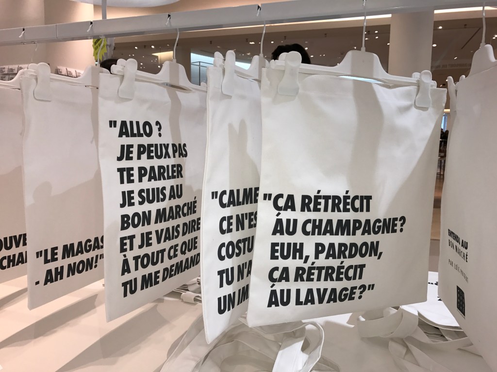 L’exposition « Entendu au Bon Marché par Loïc Prigent » est à retrouver jusqu’au 2 avril au rez-de-chaussée du Bon Marché Rive Gauche. Les meilleures phrases se déclinent sur des objets de la vie quotidienne – tote bags, mugs, carnets, etc. – disponibles en magasin et en ligne.