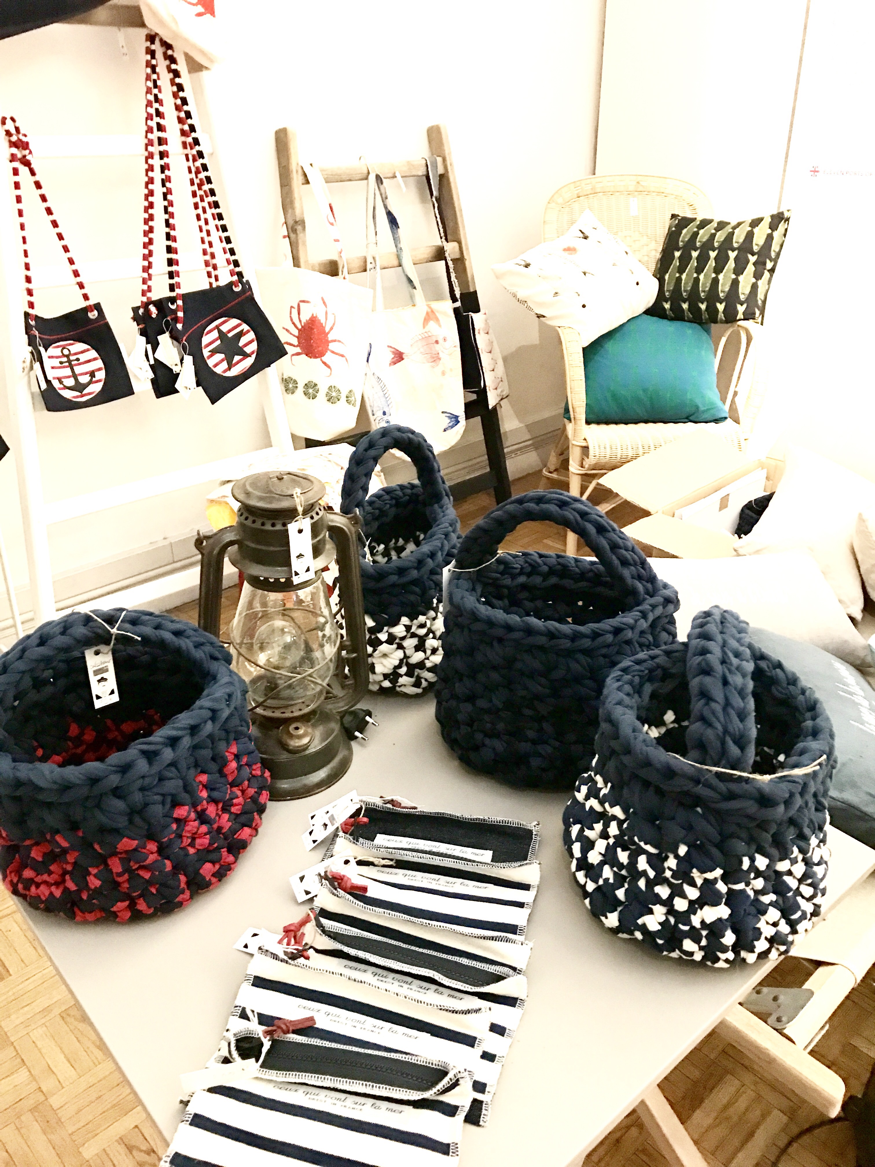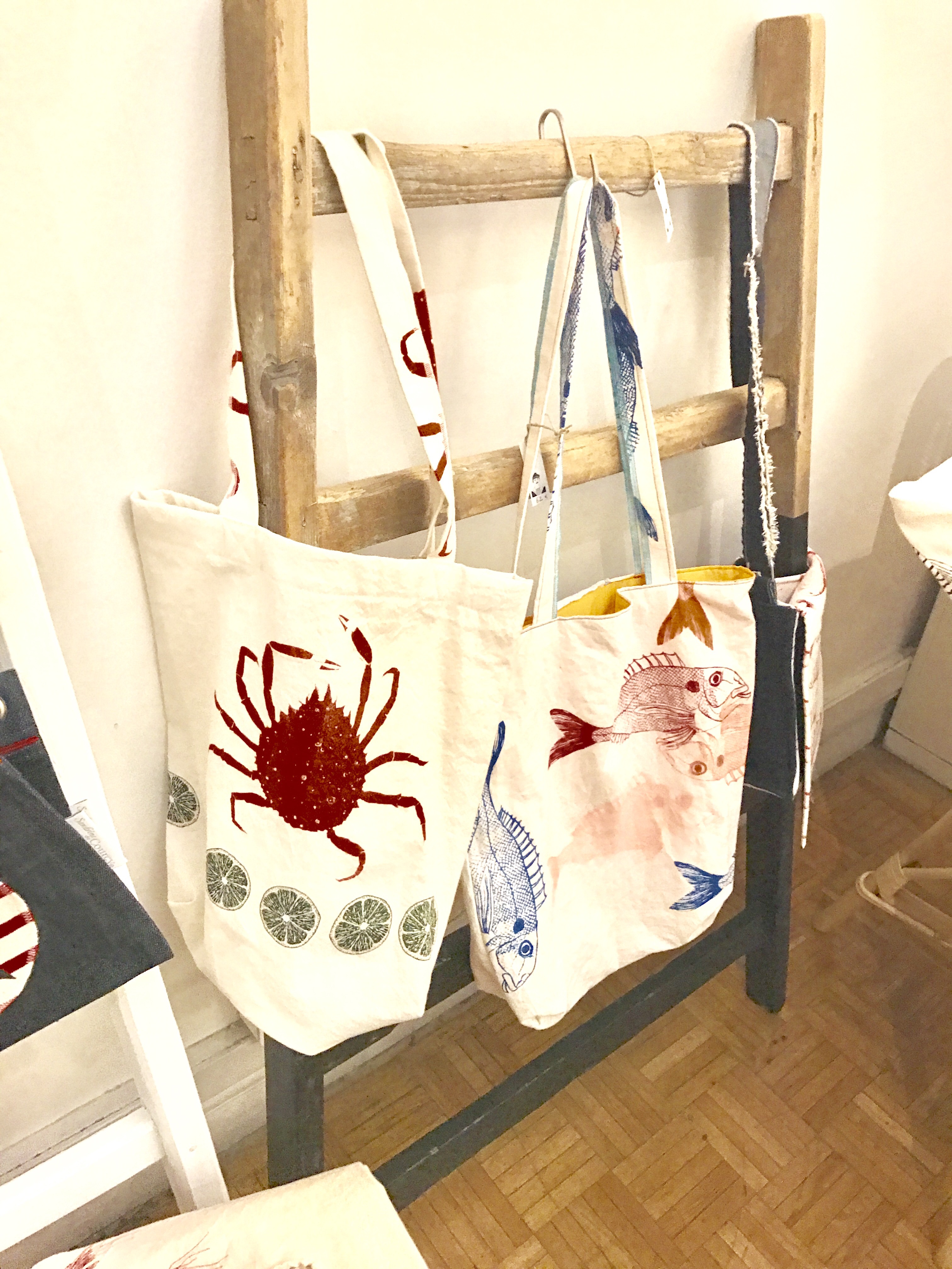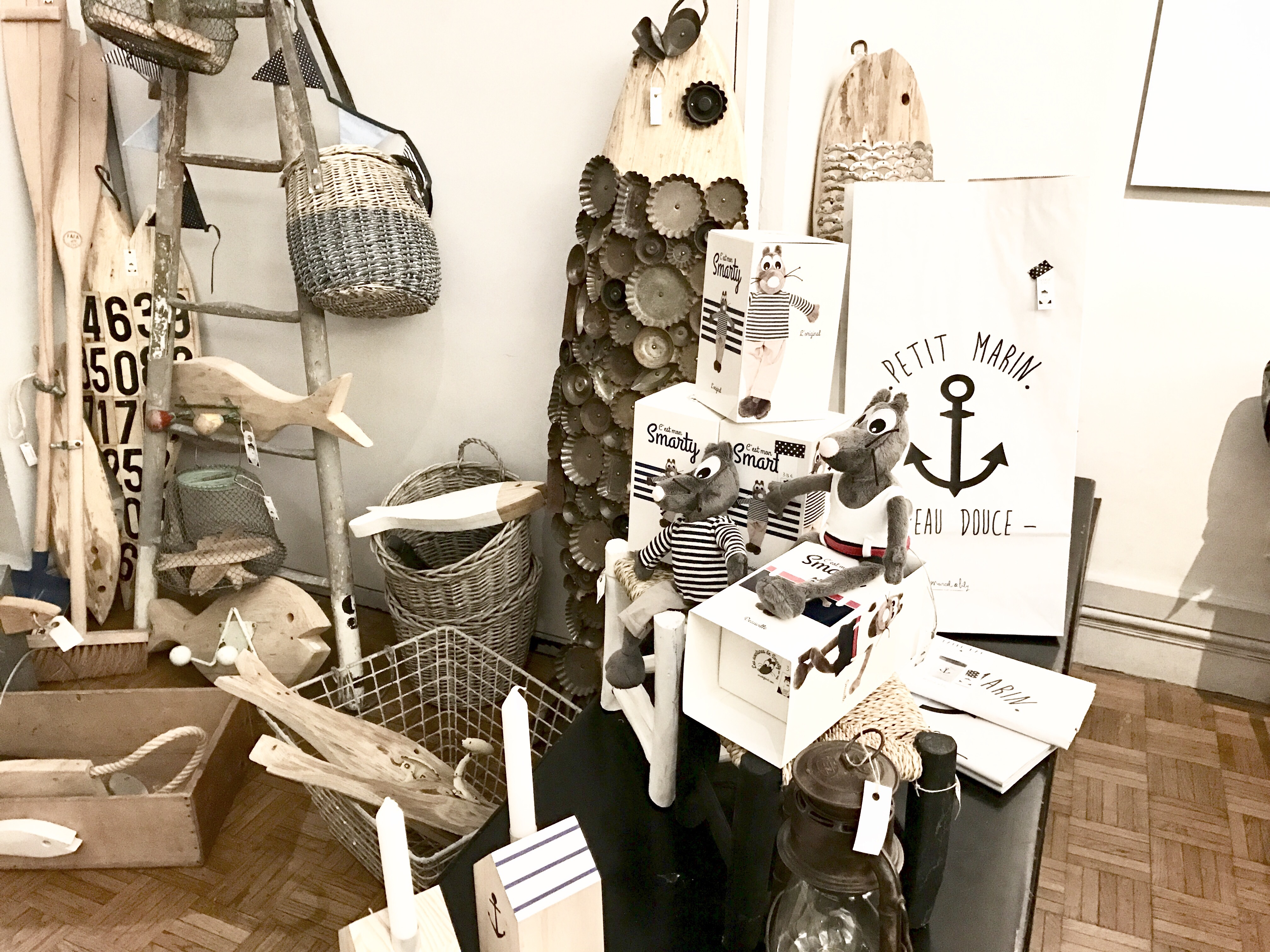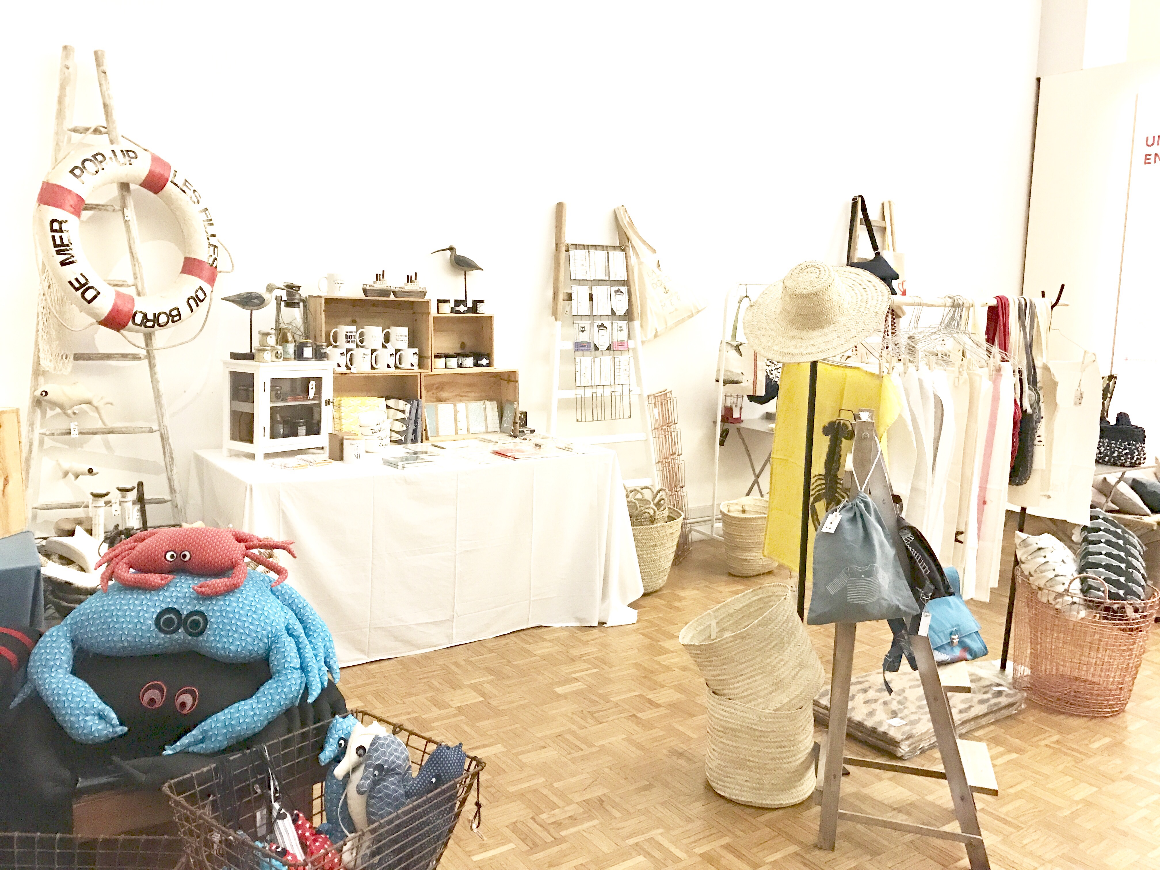 Un coup de coeur ? Pour la brocante éphémère La Compagnie Ordinaire de la Mer du duo normand Les Filles Du Bord de Mer. Astrid et Laurence proposent une sélection avisée d’artisans français de la mer et de l’océan. Objets déco pour la maison ou pour soi, papeterie, créations textiles, jouets et déco pour les enfants… La rédaction les a rencontrées la veille, alors qu’elles étaient en pleine installation.