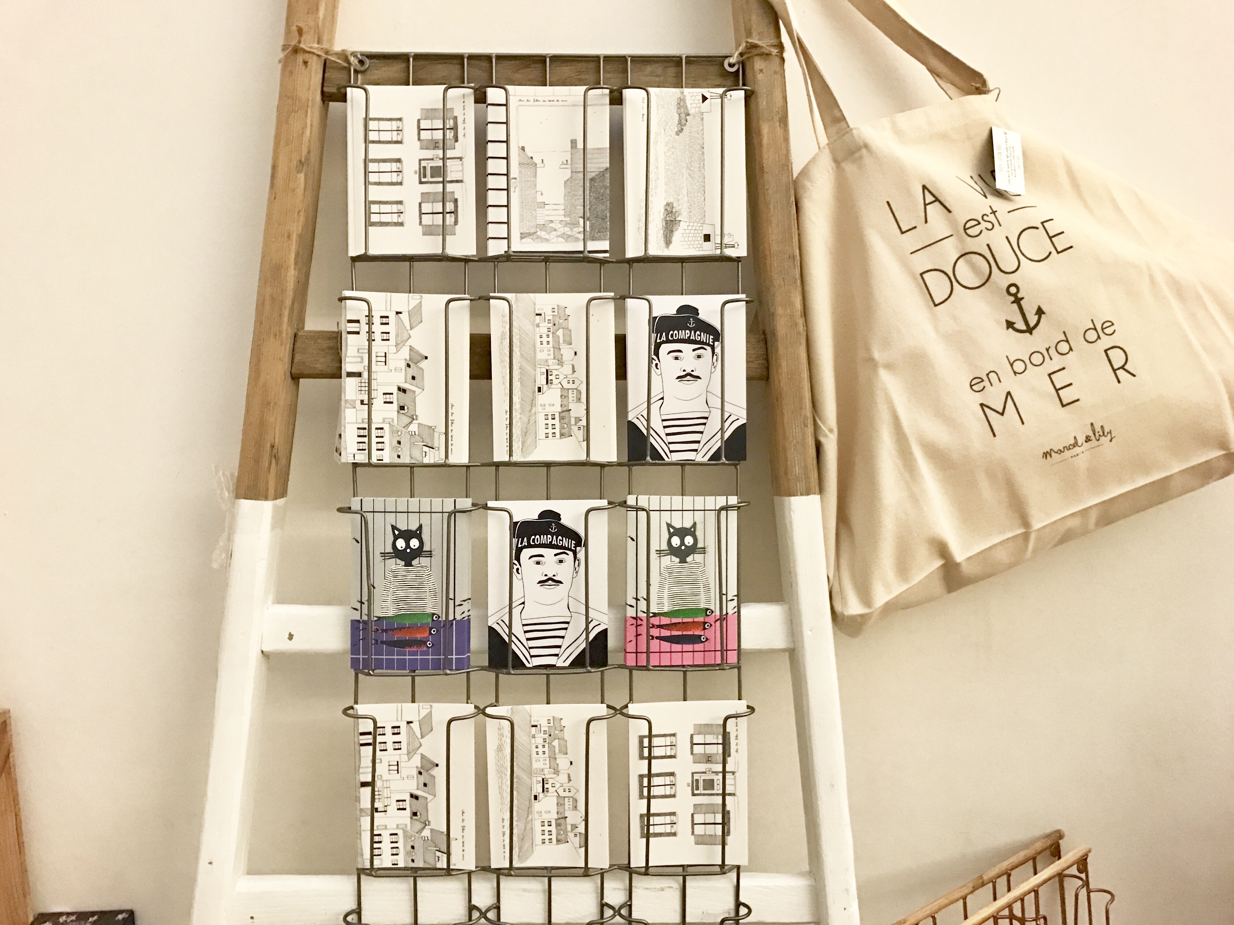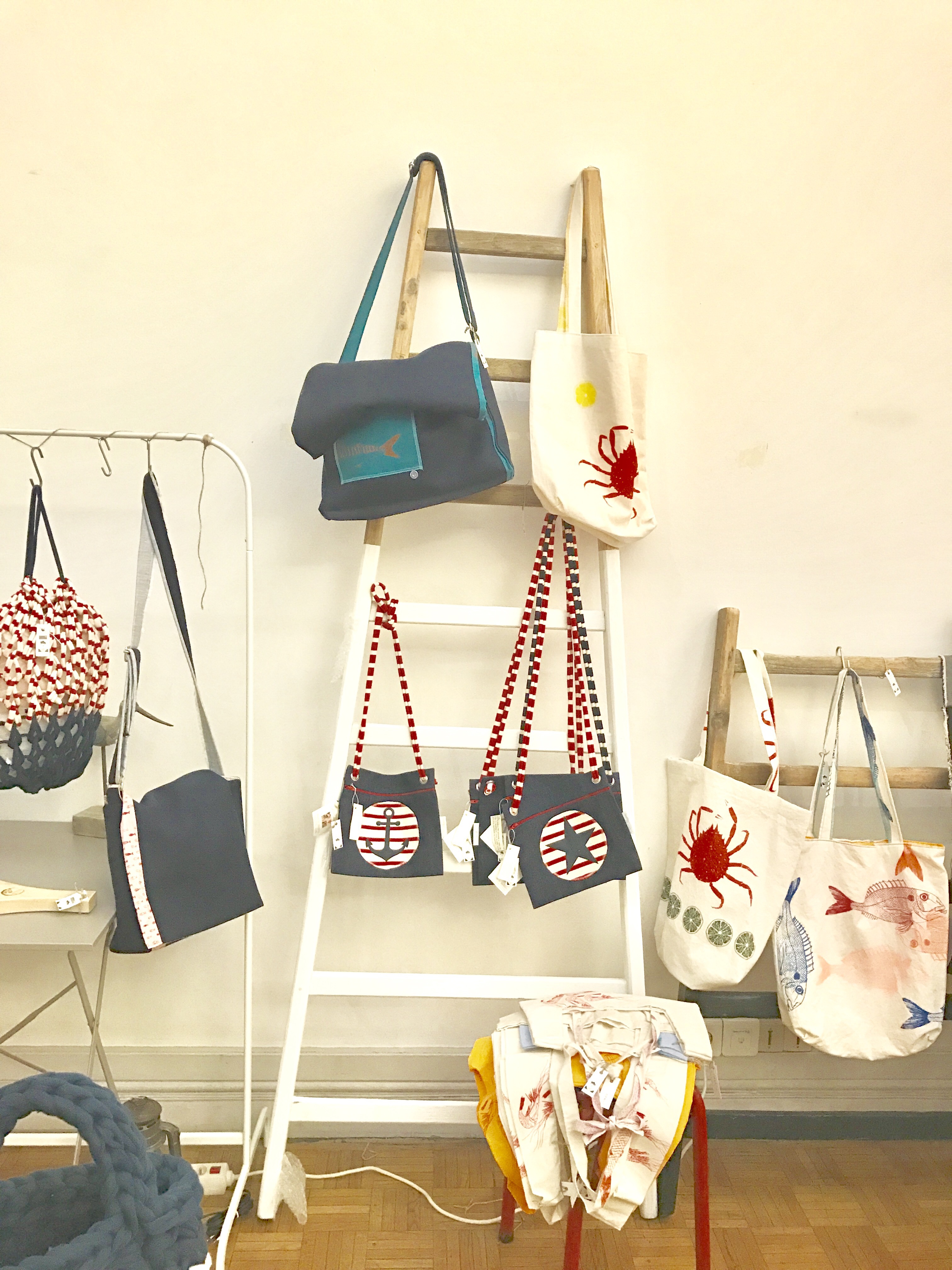 « Nous sommes parties ce matin depuis notre fief, Port en Bessin, avec notre camion rempli de nos trésors ! Nous sommes des dénicheuses de créatrices et des ferventes défenseuses du Made in France. Nous proposons tout un art de vivre à la française en bord de mer dans nos gîtes où nous installons également régulièrement des expositions-ventes pour faire connaître ces créateurs locaux. Avec nous, nous avons emporté pour le Musée de la Marine nos dernières trouvailles : les tot-bag aux sérigraphies contemporaines de la marque caennaise « Manufactura« , notre chouchou Smarty Le Rat à Deauville, les sacs en crochets de chutes de marinières de « Ceux qui vont sur la mer », les cousins en lin véritable de « Par un beau matin d’hiver », … et plein d’autres à découvrir tout au long de cette superbe semaine initiatique. »
