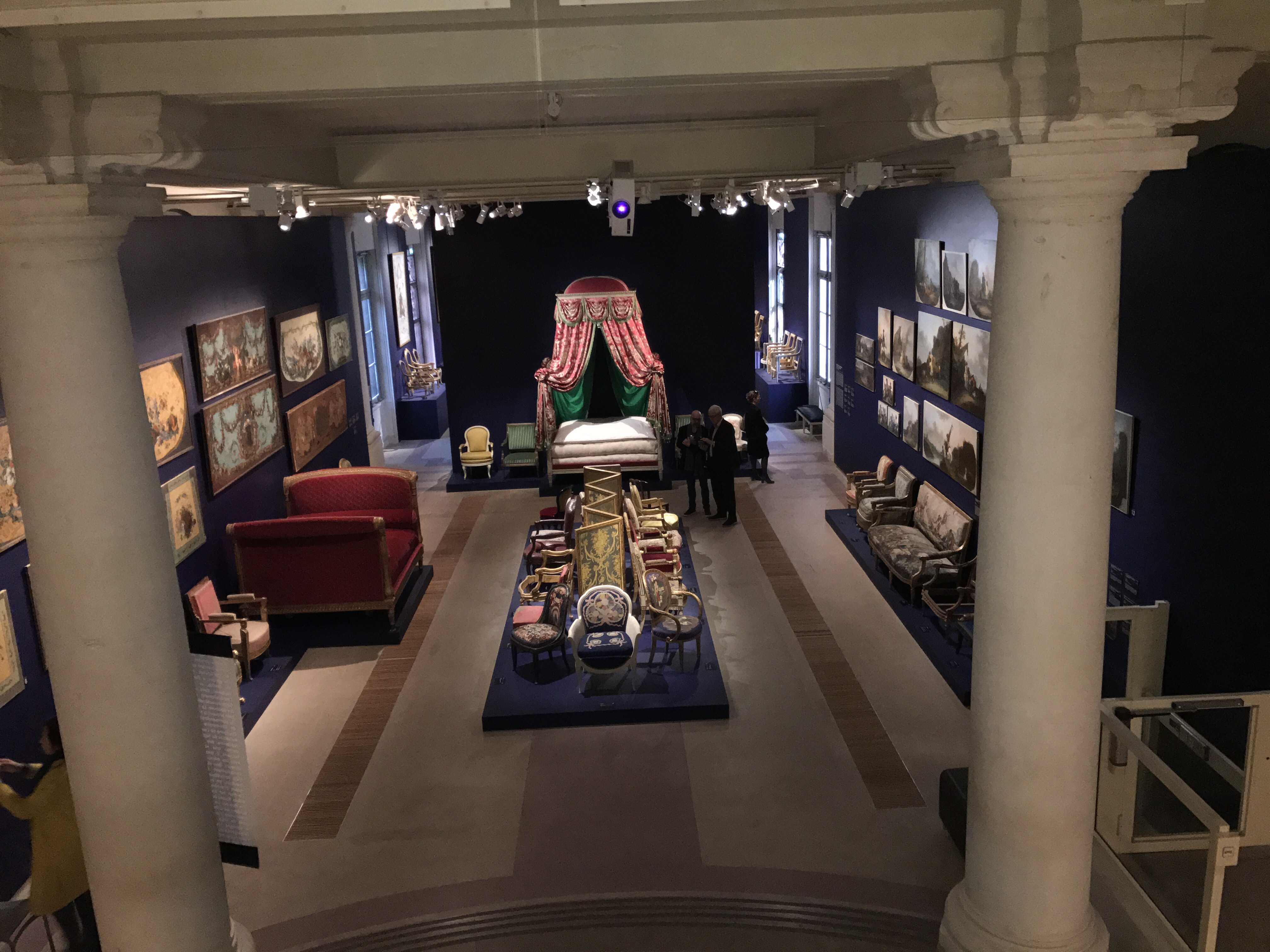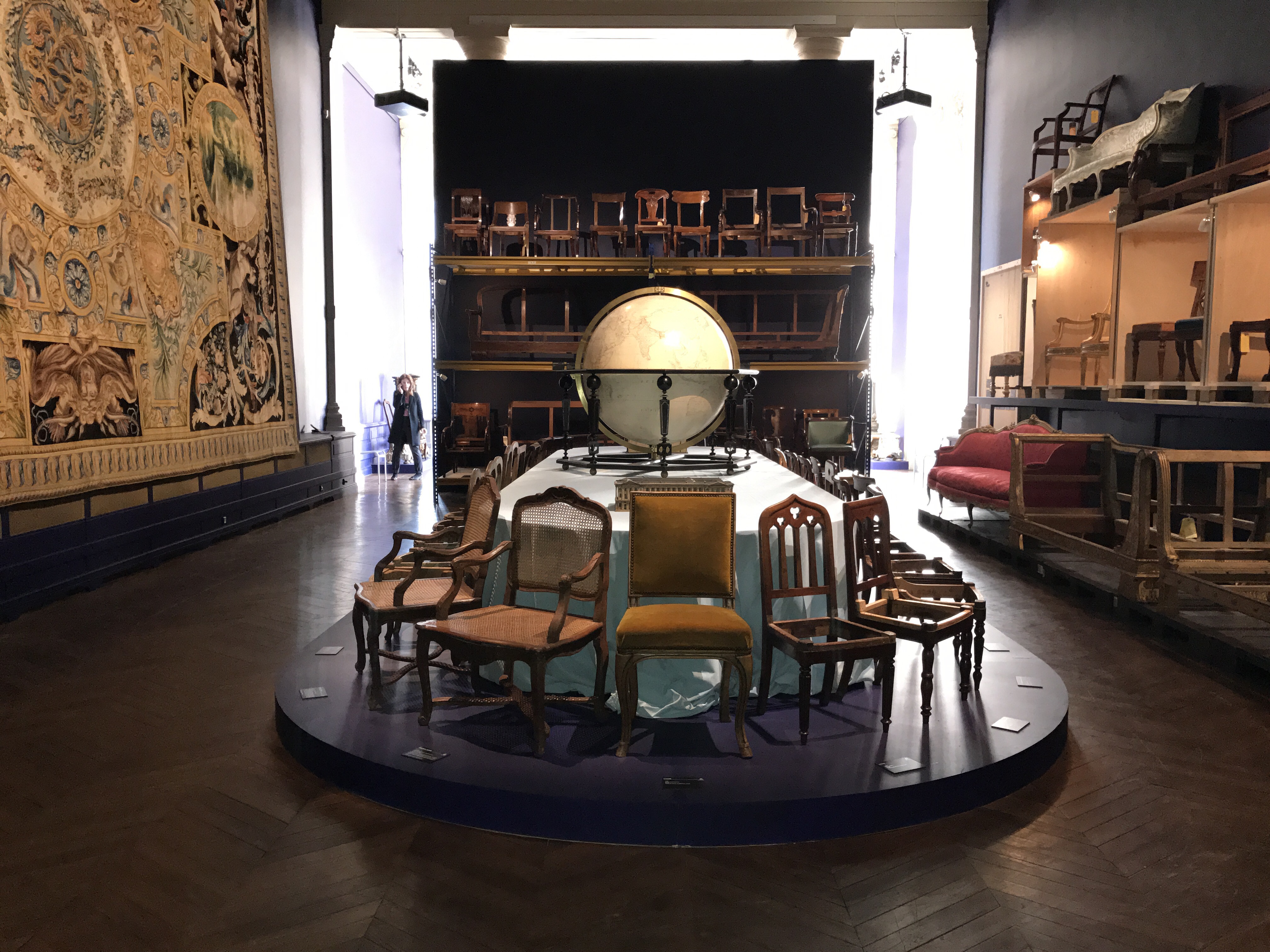 Les quelques 260 sièges proviennent d’une collection très riche du Mobilier National. Ce partenariat permet à l’exposition de présenter aussi bien un fauteuil de représentation réalisée par Bellangé pour le roi de Rome aux Tuileries en 1814 qu’un rocking-chair ultra-moderne en bois de merisier réalisé par l’Atelier de recherche et de création du Mobilier National moulé comme un ruban !