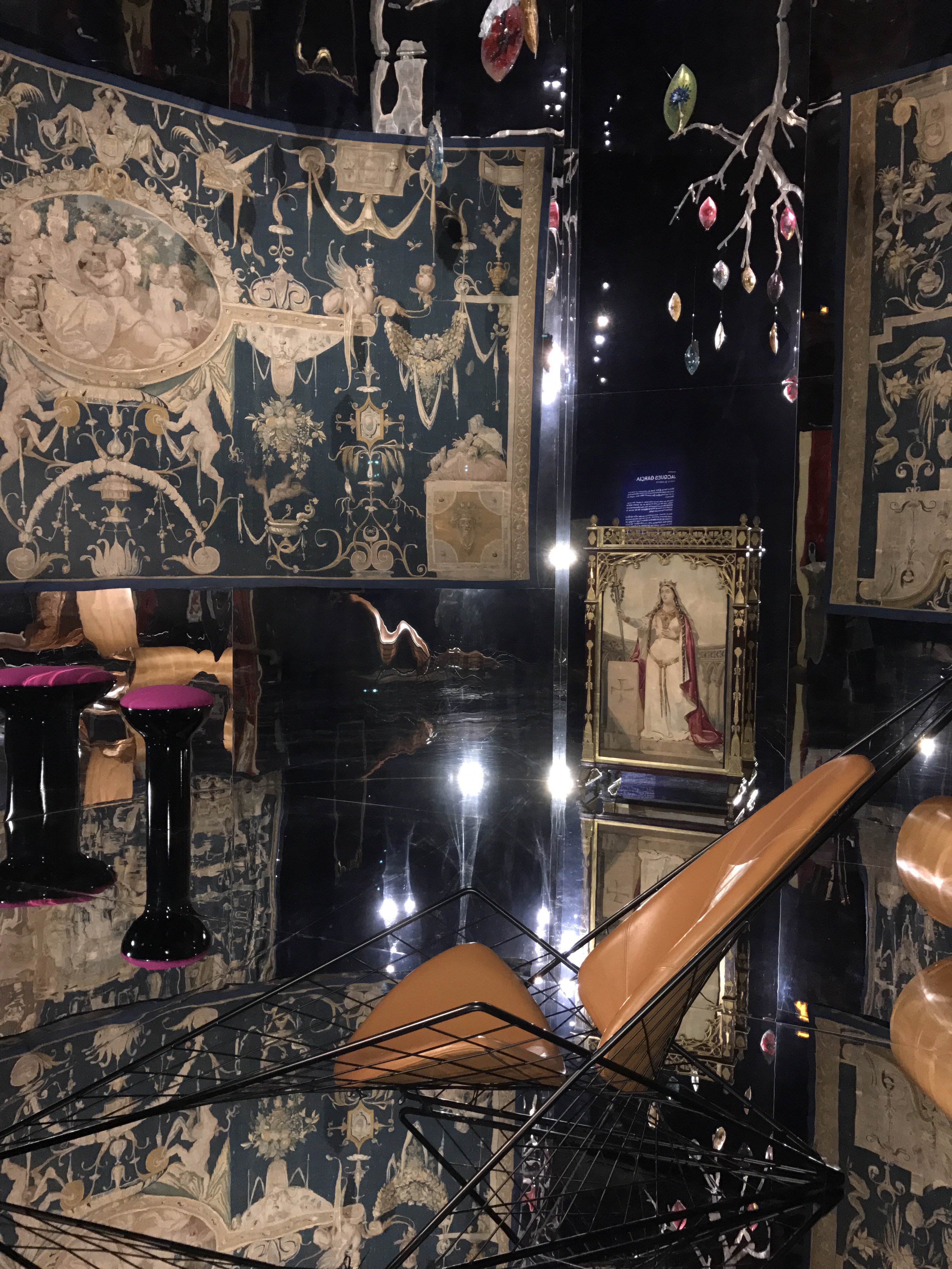Un coup de coeur ? Pour l’oeuvre d’art réalisée par Jacques Garcia lui-même et installée dans une pièce plus intimiste. L’effet des miroirs est saisissant ! Mélange des époques, renversement de l’espace, jeux de styles, … Jacques Garcia, qui se définit lui-même comme « un créateur d’espaces », nous offre un ensemble mobilier riche et travaillé assemblé comme nul autre pareil … Un bijou de d’oeuvre d’art qui signe le paroxysme de cette exposition à découvrir sans tarder.