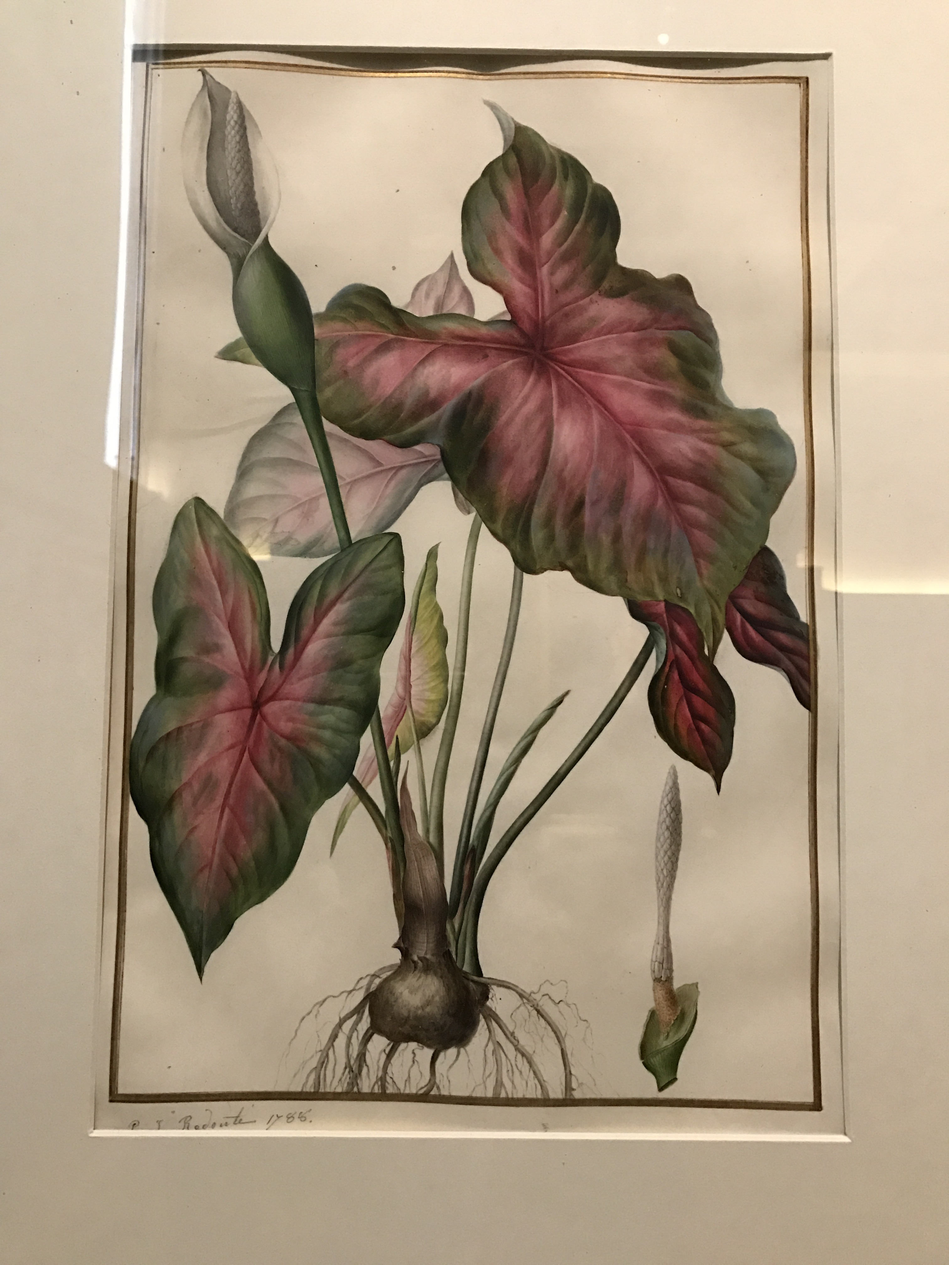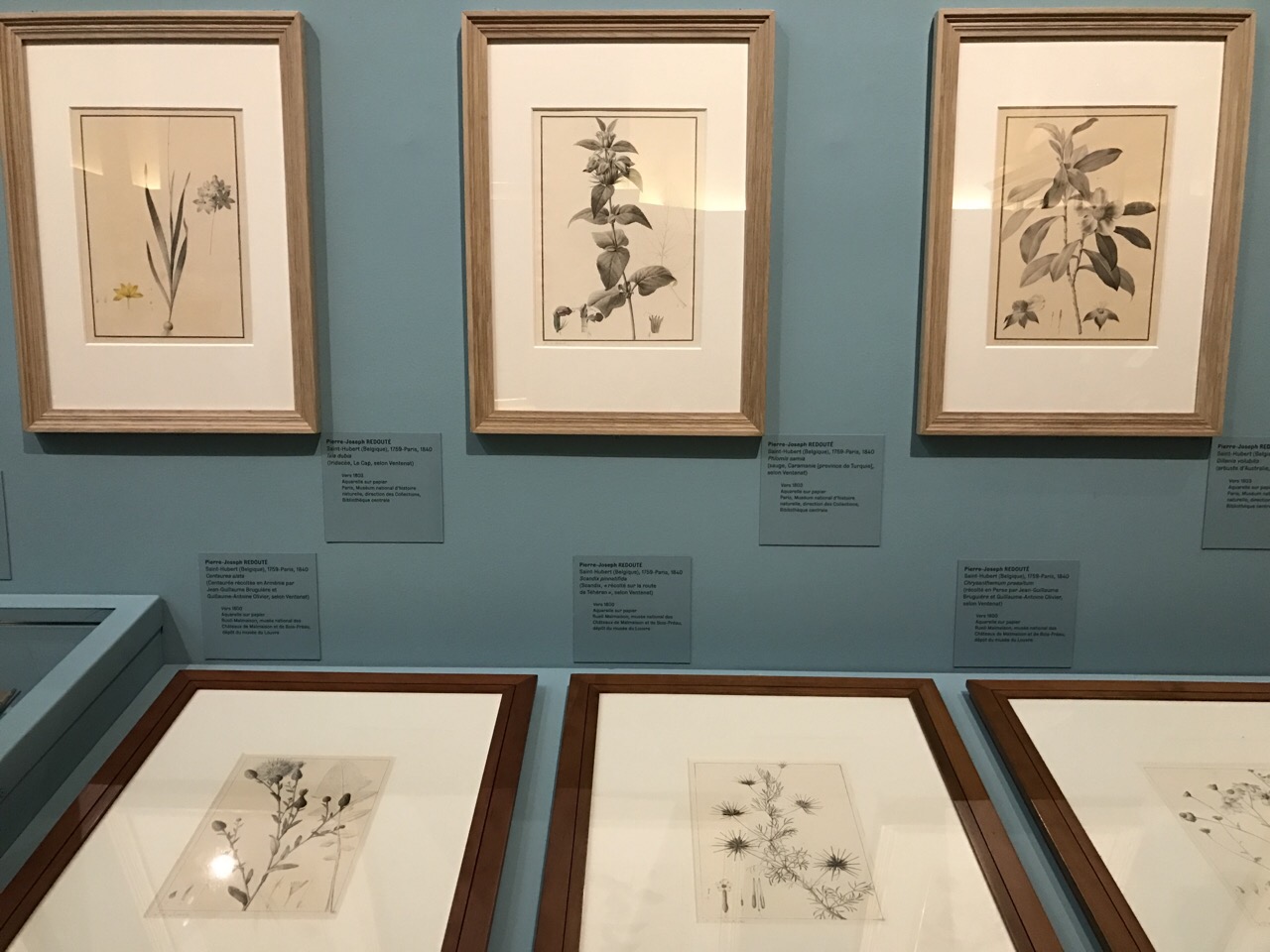 Puis, nous poursuivons le parcours de l’exposition en apprenant que l’impératrice Joséphine Bonaparte lui commanda un recueil illustré décrivant sa collection botanique à la Malmaison en 1805. En effet, avec Redouté, elle partage la même passion pour les espèces rares, précieuses et luxuriantes – qui lui rappellent son enfance passée aux Antilles. Le peintre doit beaucoup à cette reconnaissance impériale et vivra, grâce à Joséphine, ses heures de gloire et sa période la plus féconde jusqu’à la mort de l’impératrice en 1814…