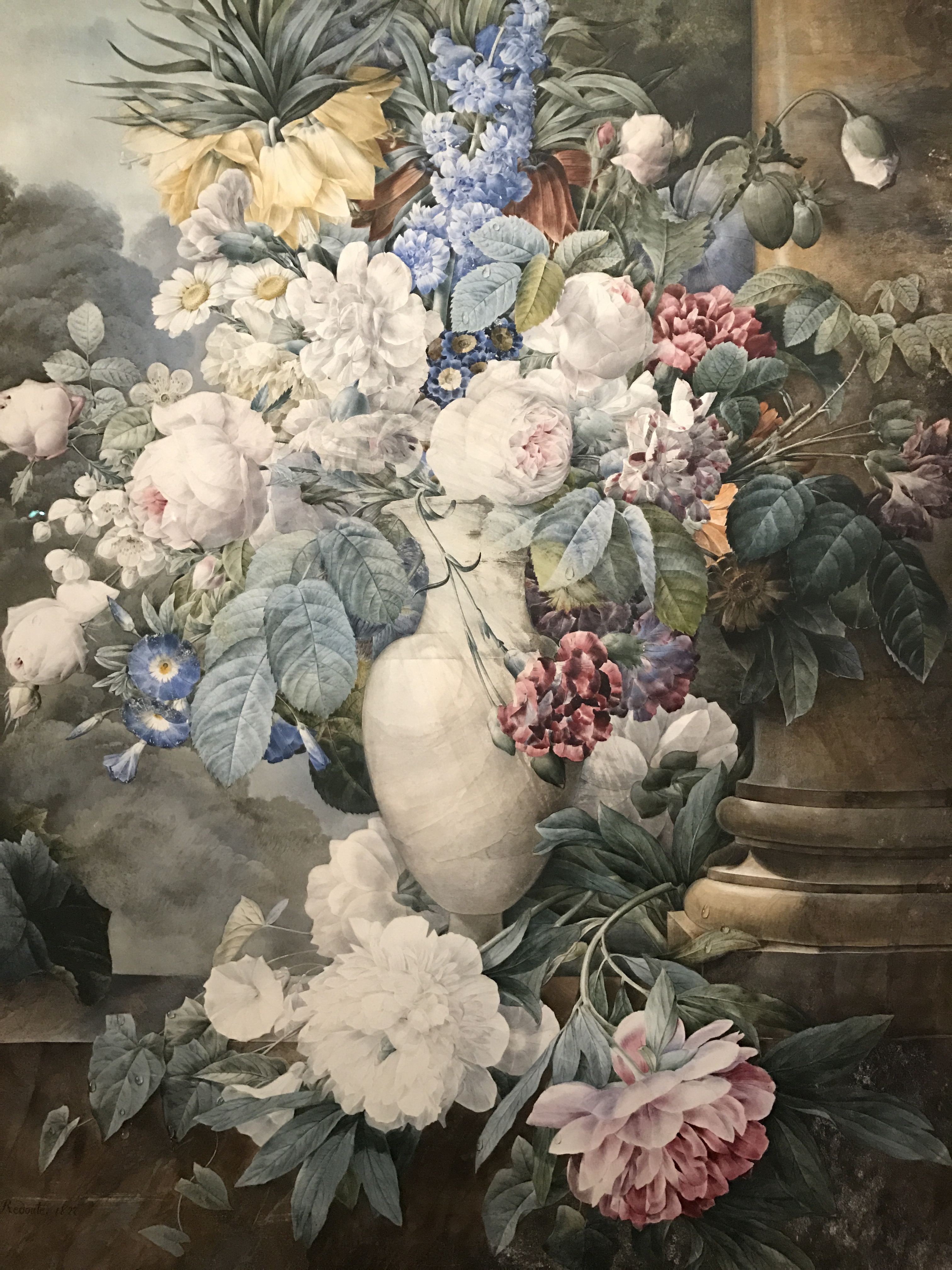 On retient ? La définition de la fleur selon Gérard Van Spaendonck, professeur de Redouté : « C’est la nature même mais la nature dans toute sa fraîcheur », Corbeille et vase de fleurs.