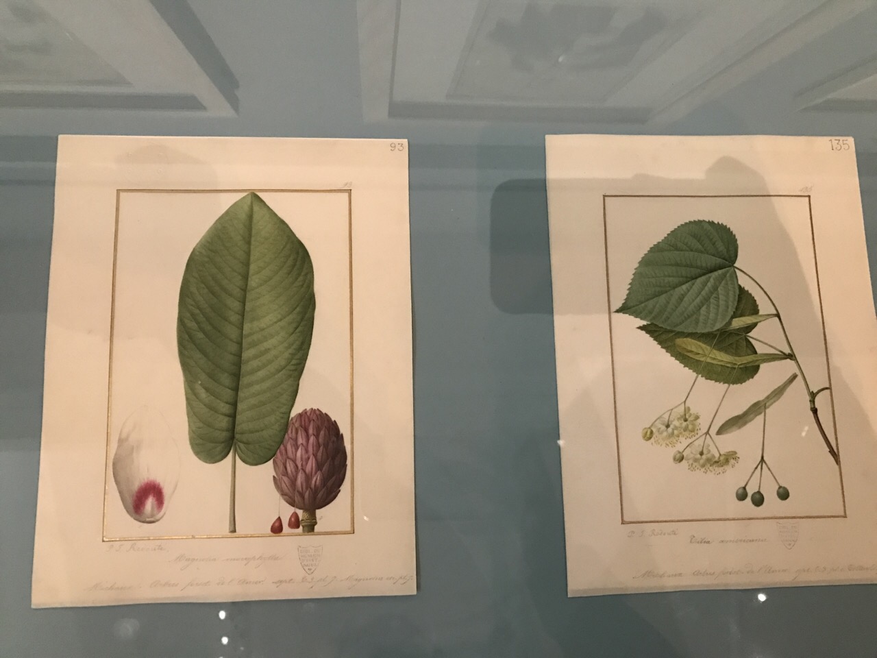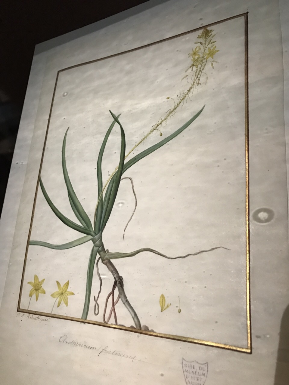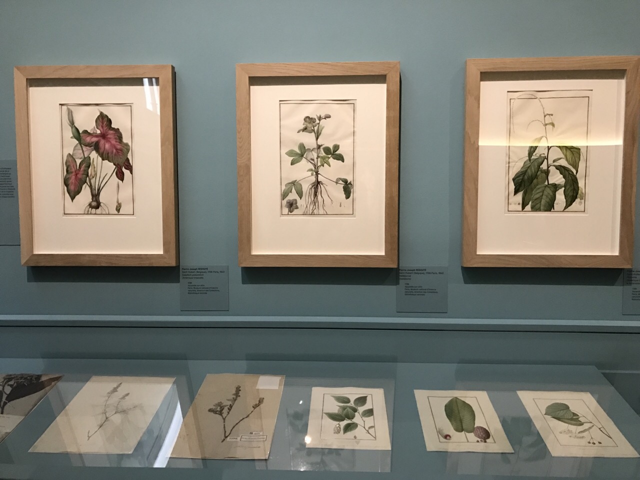 En effet, au début du parcours, on remonte le temps au XVIIIème siècle, dans l’ère nouvelle de la quête de la perfection de l’iconographie végétale. Avec ses aquarelles sur papier ou sur vélin (peau de veau de lait) et ses techniques de la gravure au pointillé, le peintre français Pierre-Joseph Redouté se démarqua par son style et sa rigueur. On admire l’effet lumineux des toiles, accentué par les paillons d’argent ajoutés par Redouté lui-même. De même, on est ébahi devant ces autres publications qui révèlent une méthode botanique pionnière, exigeant une virtuosité poussée à l’extrême.
