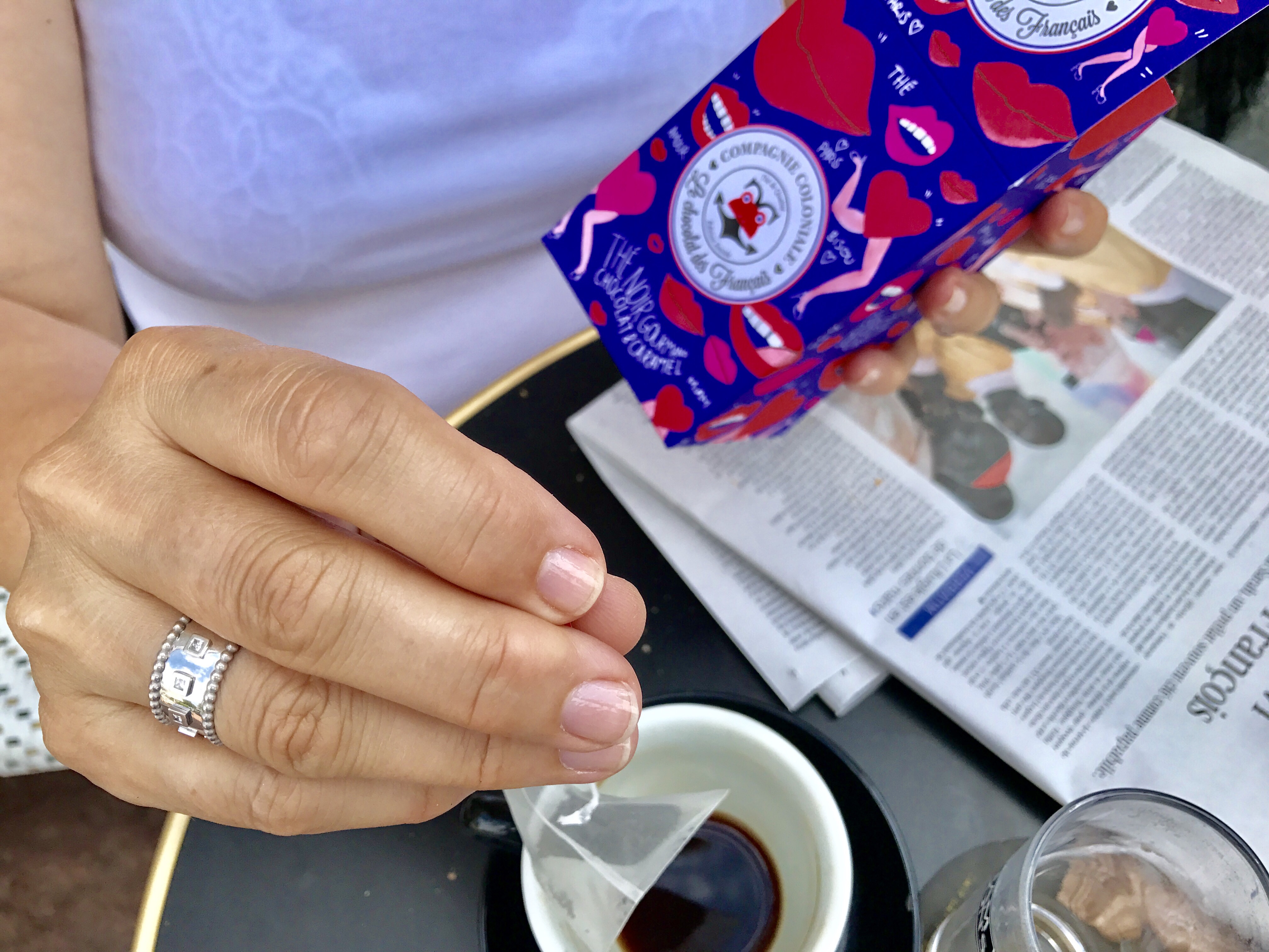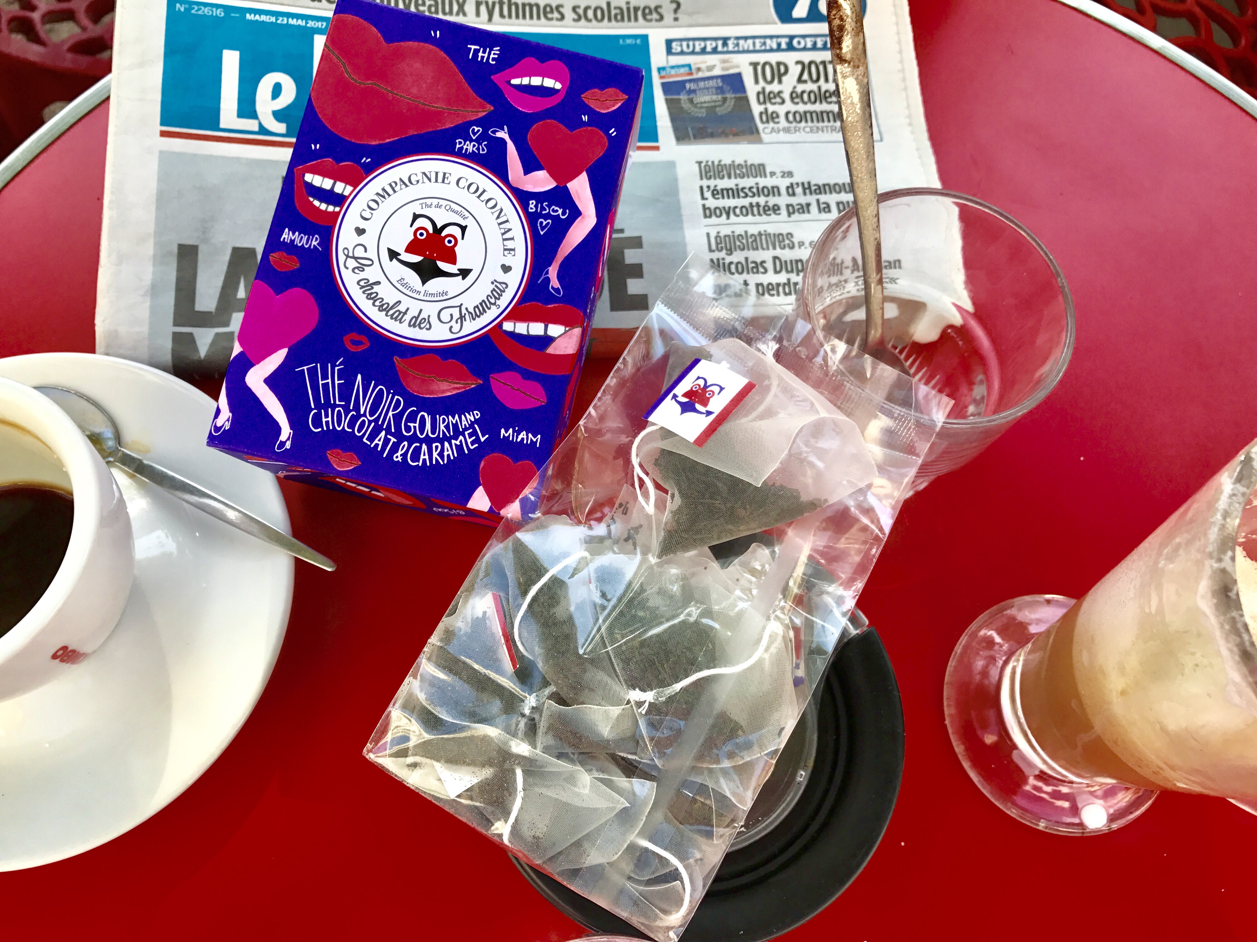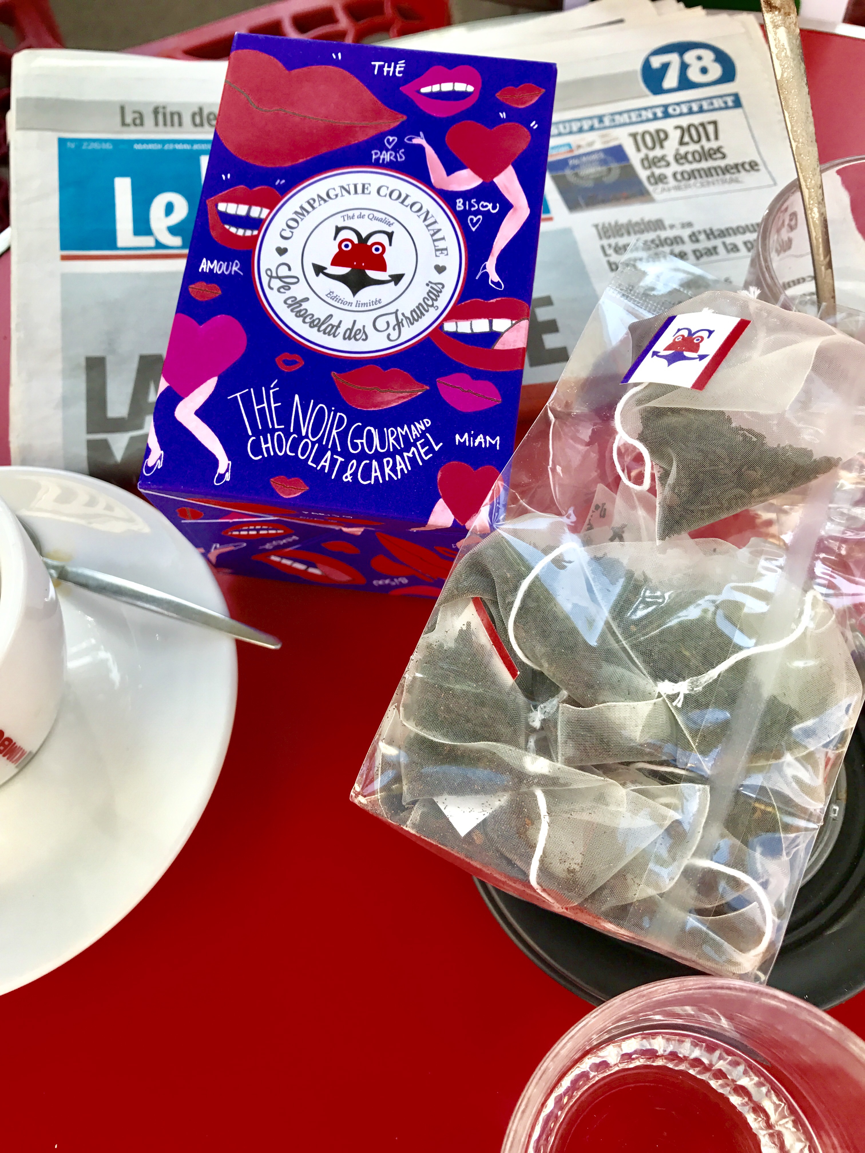 Quand l’optimisme, la jeunesse et la folie du Chocolat des Français rencontrent l’exigence et l’héritage de Compagnie Coloniale, cela donne le « Thé Noir Gourmand Chocolat et Caramel ». Cette boisson exclusive au délicat goût chocolaté est totalement déjantée et addictive ! Quant à la collaboration Compagnie Coloniale et Chocolat des Français, elle est haute en saveurs mais également en couleurs grâce au packaging signature Chocolat des Français imaginé par l’illustratrice Axelle Doppelt. La jeune artiste nous offre ainsi une boîte parée d’une couverture pop, graphique, insolite et pepsy : un coffret collector hypnotisant plein d’humour et d’amour.