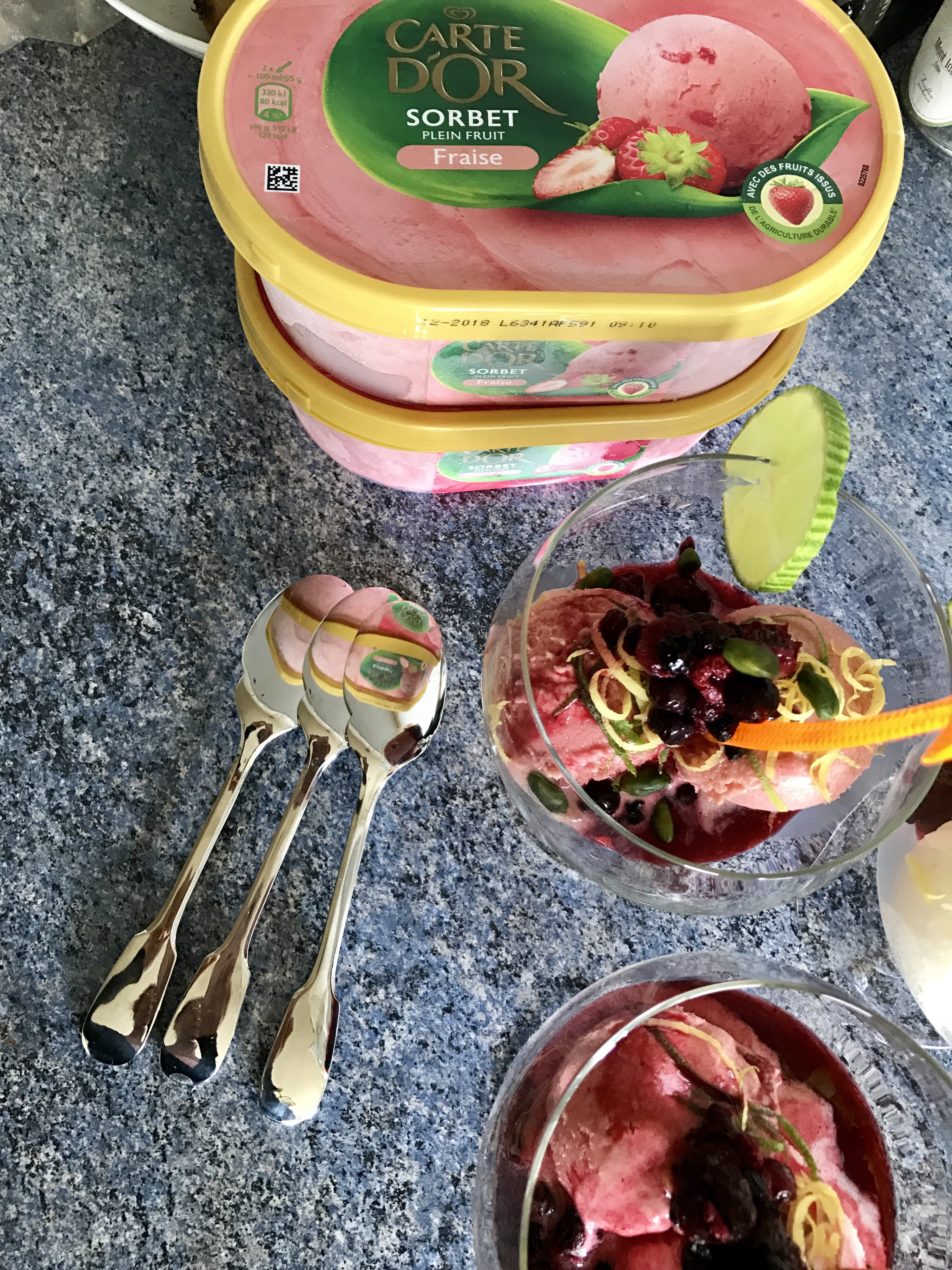 Le plus ? Sept références sont d’ores et déjà disponibles : Mangue, Pomme, Fraise, Fruit de la passion, Framboise, Citron vert et Citron. De quoi convaincre tous les gourmands ! Et de réaliser de belles coupes pleines de couleurs et de goûts. La rédaction a en effet associé les saveurs Fraise, Framboise et Citron pour un dessert aux goûts intenses ! On y a ajouté quelques fruits rouges et des zestes de citron pour encore plus de plaisir …
