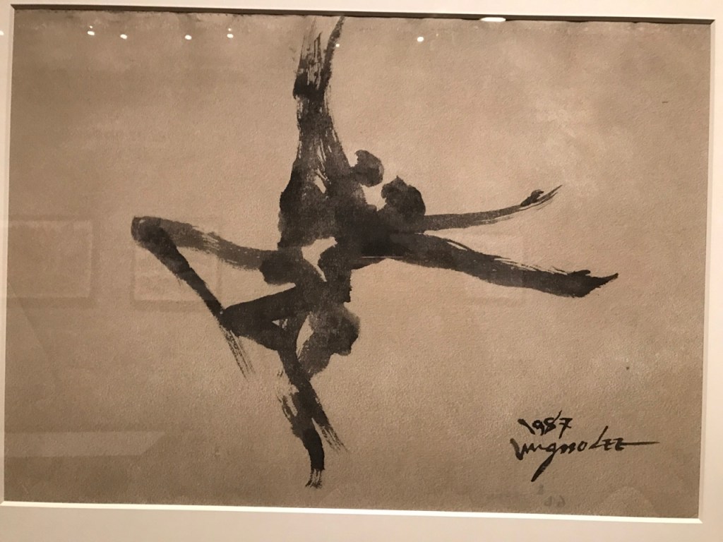 Le parcours nous emmène ensuite en 1964, date à laquelle Lee Ungno fonda l’Académie de peinture Orientale de Paris. Cette année fut cruciale pour l’artiste qui manifesta une obsession pour l’importance du trait du pinceau et des outils. Il délivra également un vision subjective de l’environnement physique avec de merveilleuses toiles représentant des flamands roses, chevaux , poisson, un bananier « myriade de feuilles dans le vent »… Les courbes affirmées et équilibrées, la décoration graphique et la vigueur des teintes colorées n’ont pu laisser la réaction de marbre (ni aucun autre visiteur d’’ailleurs !).