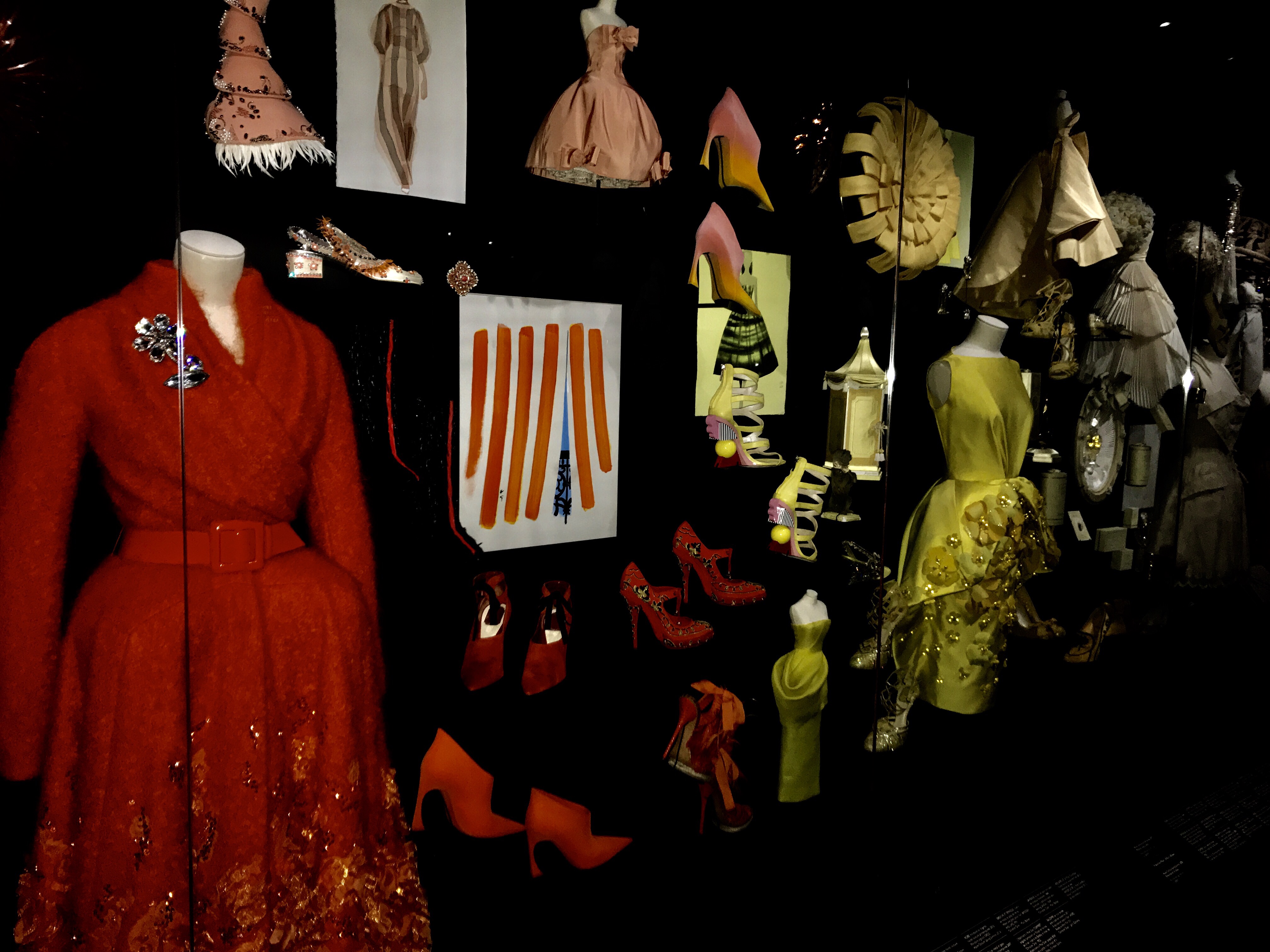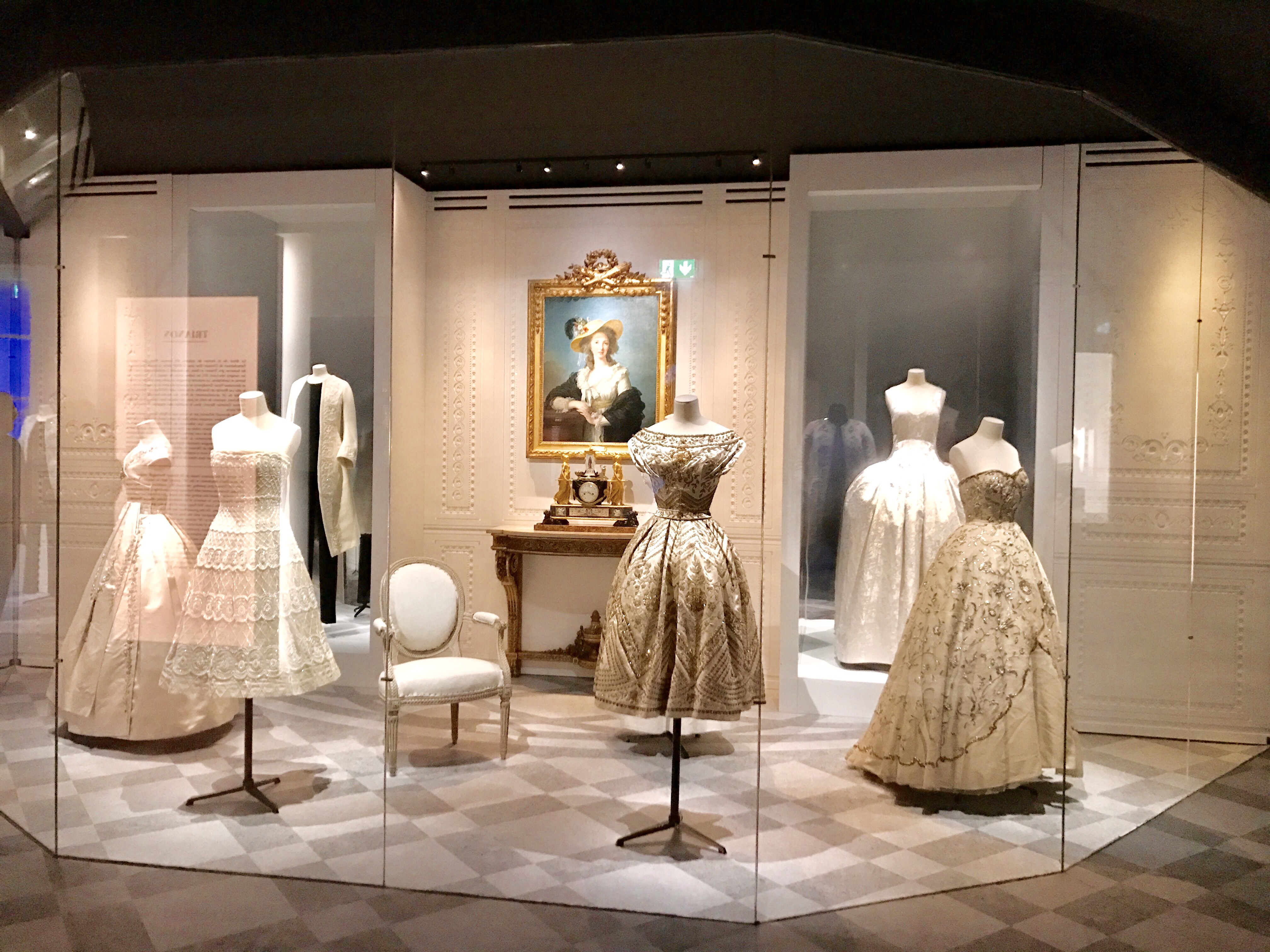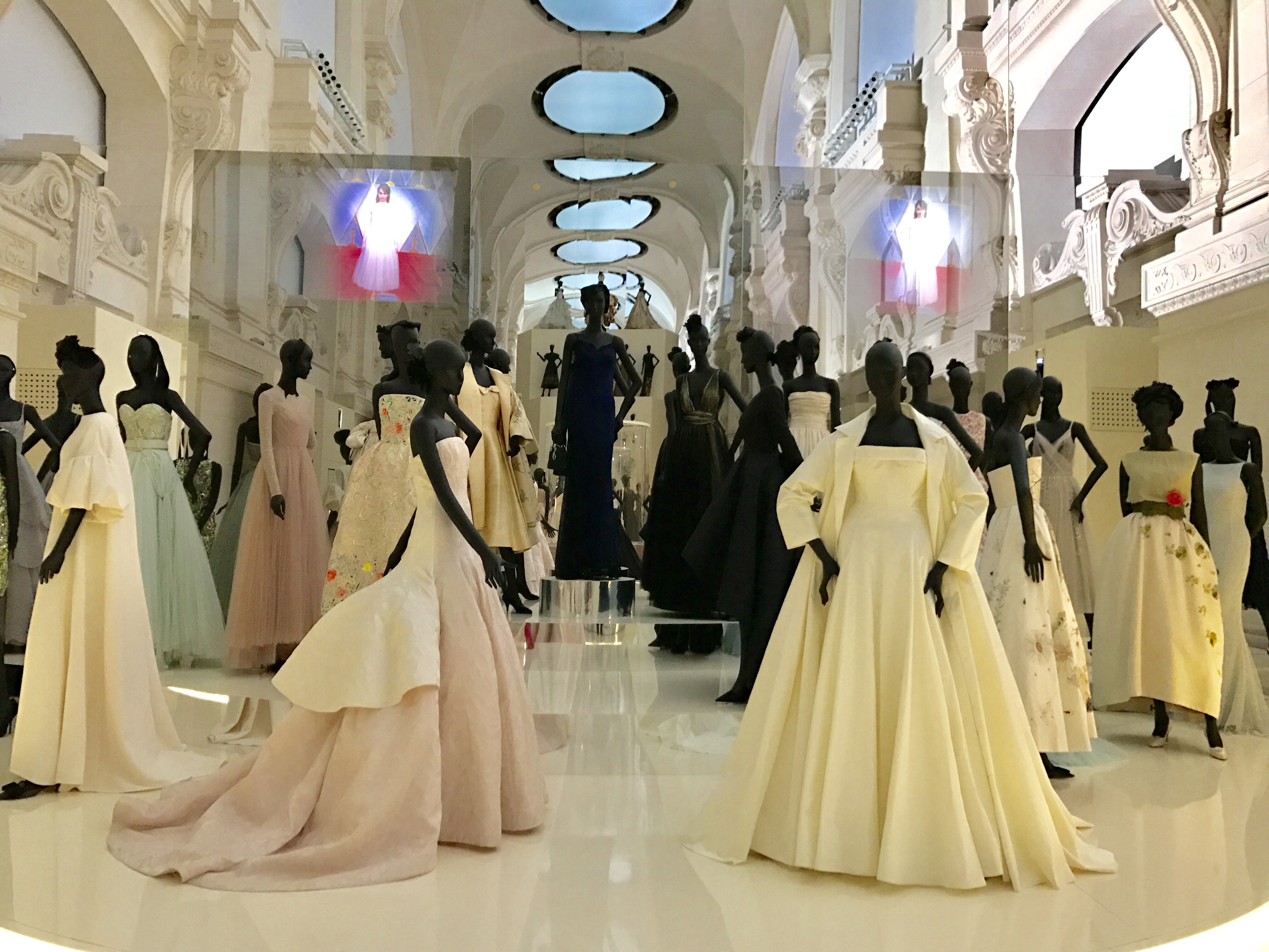 Le parcours de cette exposition pensé par Nathalie Crinière est un hommage grandiose à l’univers tout entier de la maison Dior : architectures très diverses se succèdent dans un rythme soutenu et haletant ! On est d’emblée plongé dans les intérieurs du 30 avenue Montaigne avant de découvrir dans une reconstitution de la galerie de la rue Cambacérès, sous la forme de miniatures, les robes, les accessoires et les dessins qui ont marqué l’histoire de Dior.