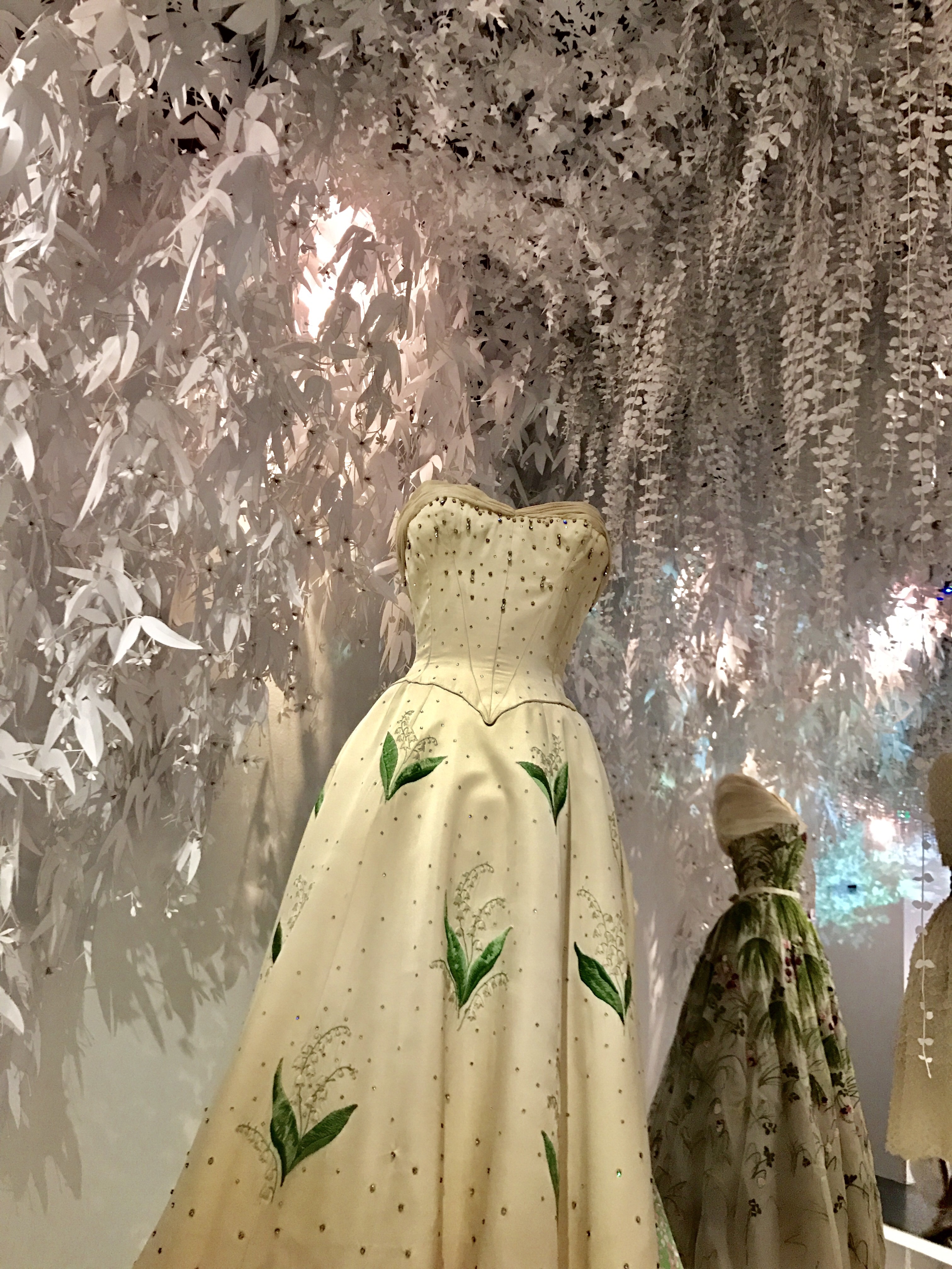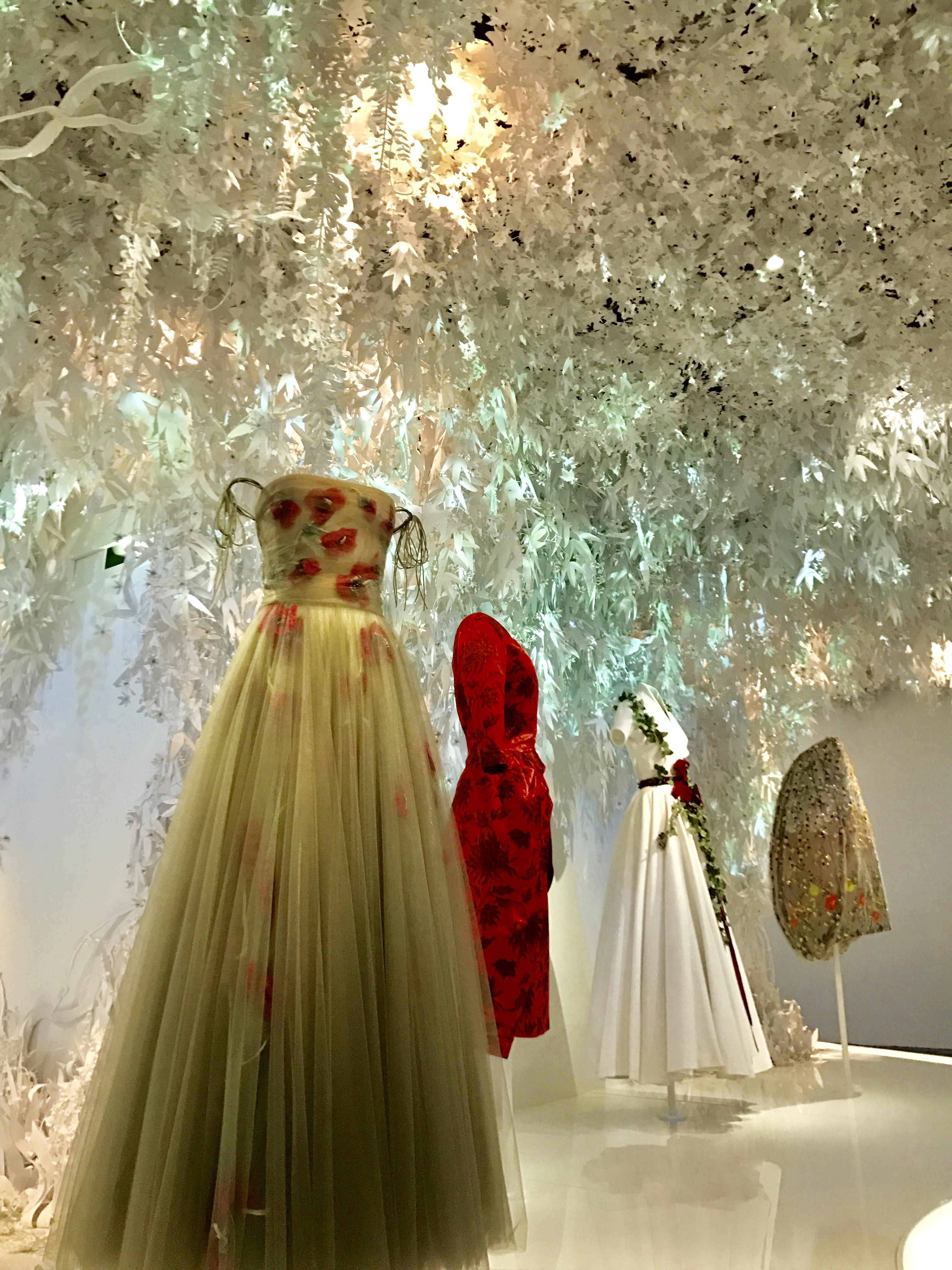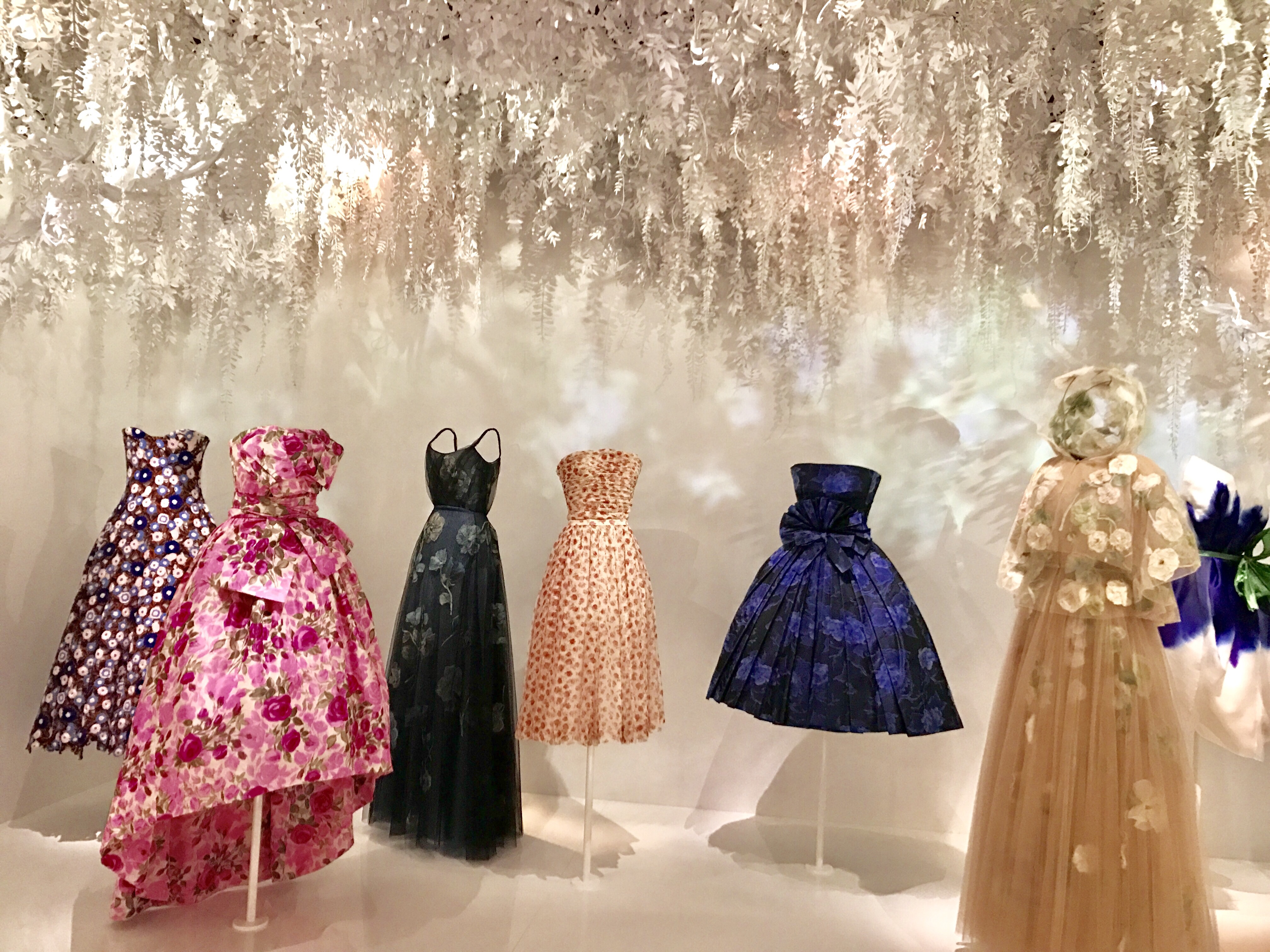 Un coup de coeur ? Pour la partie de l’exposition consacrée au jardin de Monsieur Dior et l’univers floral décliné en robes et en parfums ! Rose, dahlia et tulipe : autant de fleurs qui ont inspiré Christian Dior pour ces collections estivales pensées comme des bals de printemps !