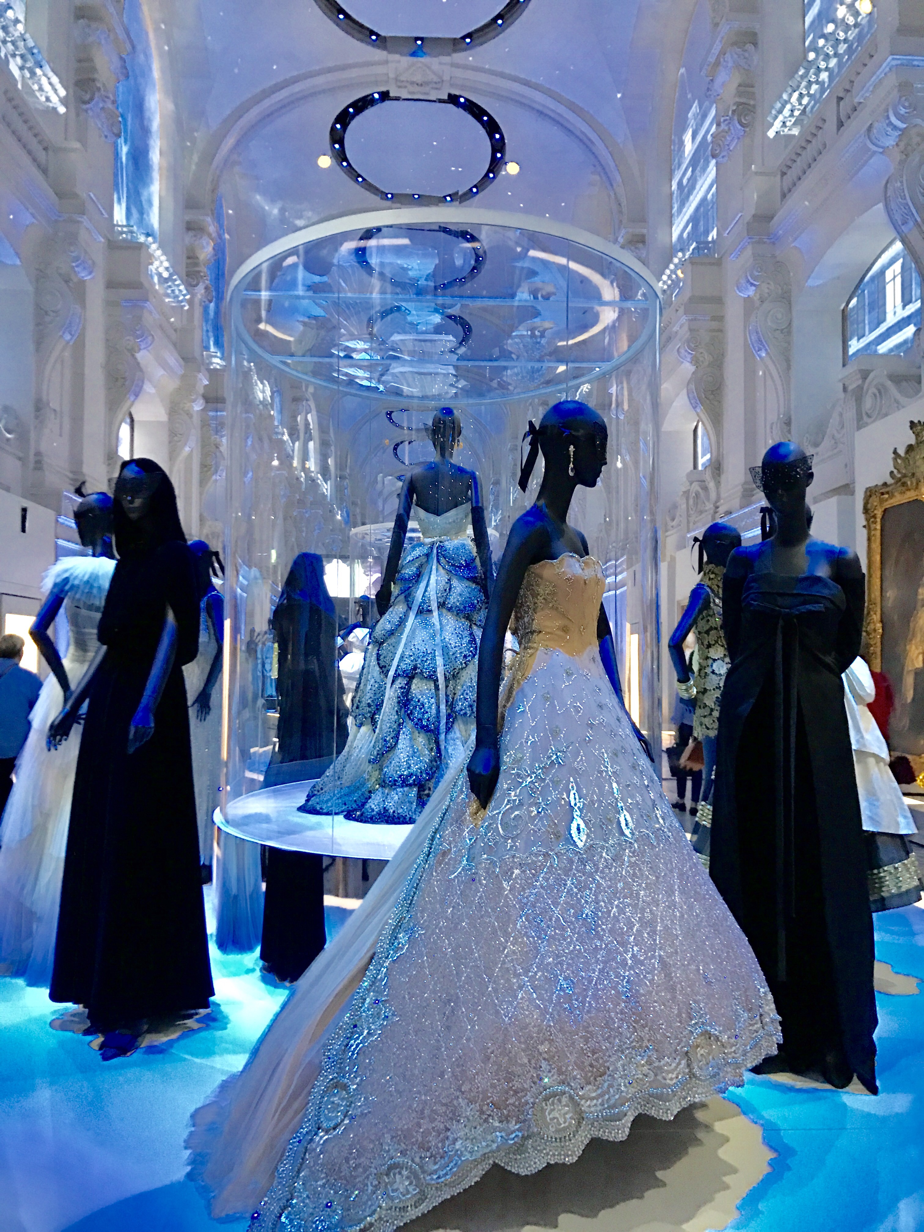 On poursuit dans ce qui s’apparente à la prestigieuse rue de Rivoli pour échapper au temps et voyager à travers un demi-siècle de créations haute-couture : six salles pour six designers aux personnalités et aux caractères très affirmés qui ont fait les heures de gloire de Dior. D’Yves Saint Laurent à Maria Grazia Chiuri, les robes rivalisent d’élégance, de style et d’audace…