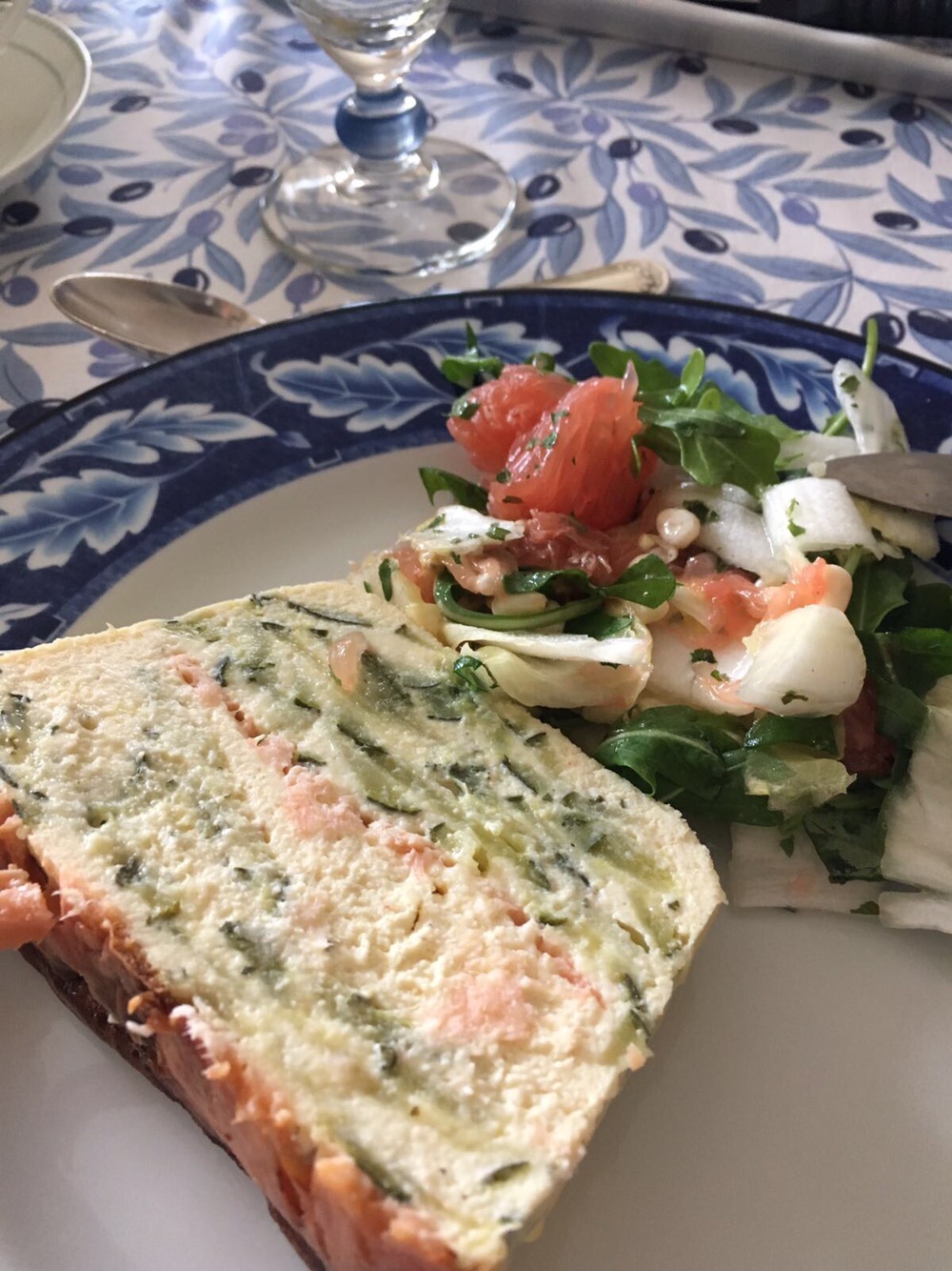 - Allumez le four th.7 (210°C). Beurrez un moule à cake. Disposez une couche de crème dans le moule, des lamelles de courgette, les tranches de saumon coupées en deux, les fines herbes, du poivre, en intercalant les ingrédients jusqu’à épuisement.