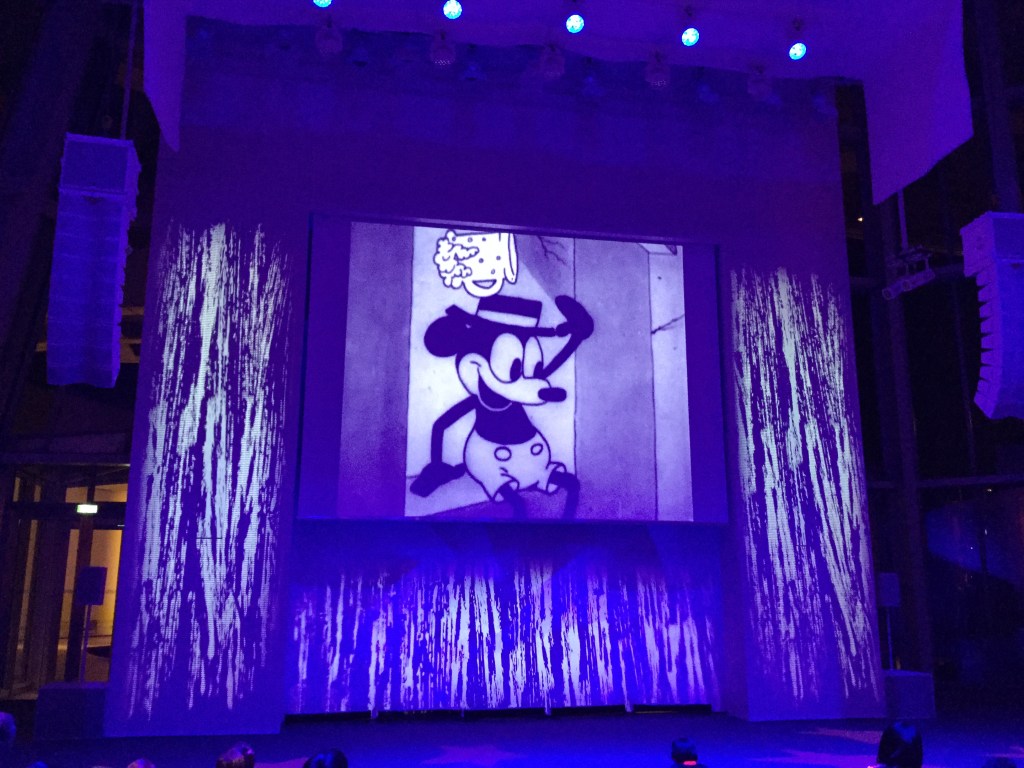 Le temps d’une soirée, la Fondation Louis Vuitton a invité quelques privilégiés à faire un voyage dans le temps, à l’époque de la naissance de Mickey ! Retour en novembre 1928. Comme les spectateurs new-yorkais d’antan, les visiteurs ont pu applaudir pendant près d’une heure Mickey Mouse dans une série de cartoons dont les célèbres films Steamboat Willie, Mickey gaucho et Plane Crazy ! Chaque parodie hilarante, racontant l’histoire de cette petite souris, connaît encore aujourd’hui un succès intergénérationnel. Et pour preuve, ce soir-là, l’auditorium de la Fondation Louis Vuitton accueillait petits et grands pour la joie de tout un chacun. Ces premiers dessins animés sont des courts métrages de quelques minutes qui mettent en scène des personnages de fantaisie que l’on n’est pas prêt d’oublier : Mickey, Minnie, Dingo, Pluto, Donald Duck, Clarabelle Cow … !
