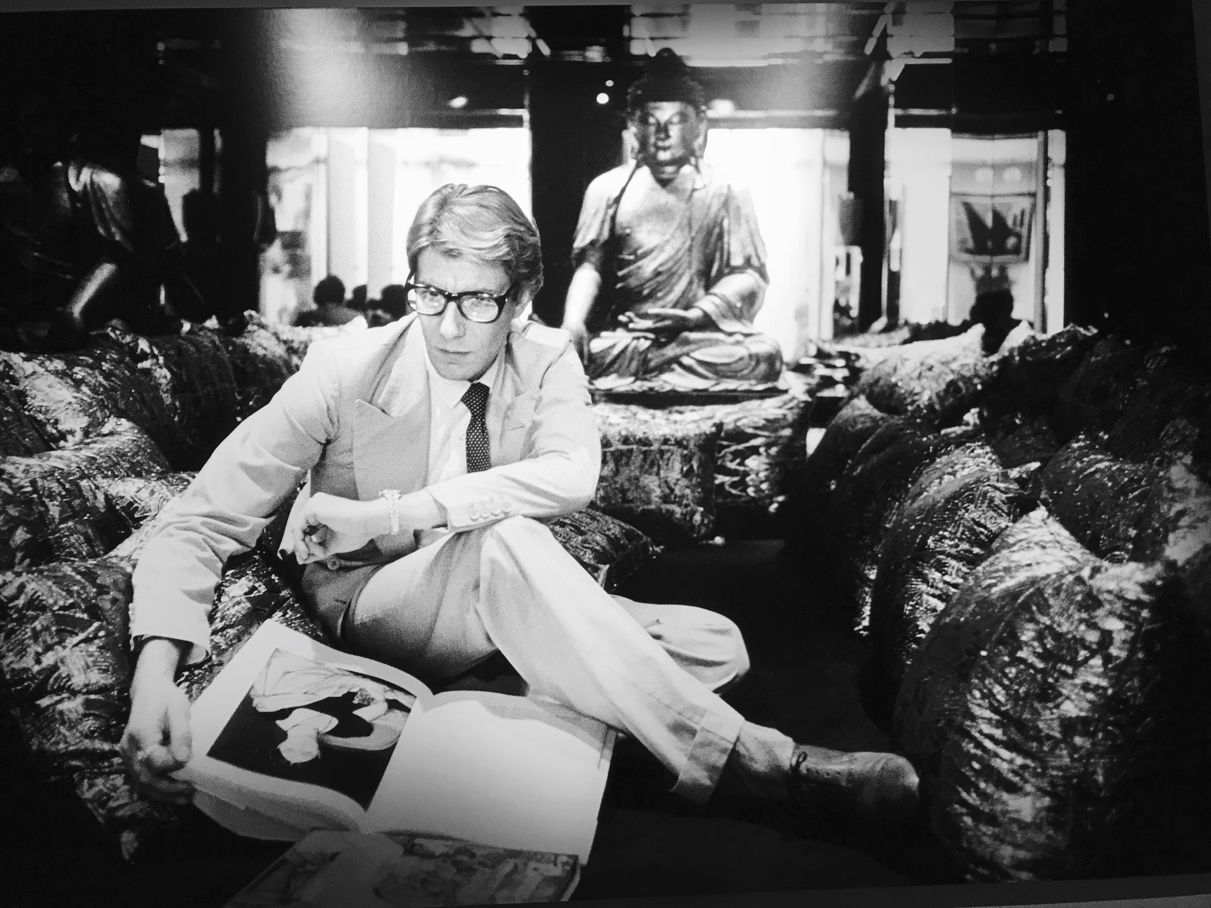 Pourquoi on aime ? Parce que … quoi de plus symbolique pour le Musée YSL Paris que d’ouvrir son programme d’exposition temporaire par le thème de l’Asie ! Cette contrée lointaine dont Yves Saint Laurent détourna les clichés pour en sublimer les traditions vestimentaires et locales. En effet, on y retrouve le fil de son admiration pour l’orientalisme au travers d’une série d’objets d’art qui dialoguent avec les collections de vêtements. Cette exposition, pensée comme un triptyque, nous donne alors ce que l’on aime toucher des yeux (défilé foisonnant de velours noir et or, de taffetas rouge, de bleus de Chine, de kimonos de mousseline,…) mais aussi nous fait découvrir ce que nous n’aurions jamais oser aimer. La sélection des pièces vestimentaires s’équilibre autour de dessins et de photographies intimes d’Yves Saint Laurent. Et c’est toujours ce « coeur » qui fait battre le parcours de l’expo et qui renouvelle le musée sans le dénaturer. Quant au studio, il reste ouvert au public et ne manque pas de jouer aussi sa partition. Ne va-t-on pas aussi au Musée YSL pour être bouleversé par cette pièce-bureau si émouvante….