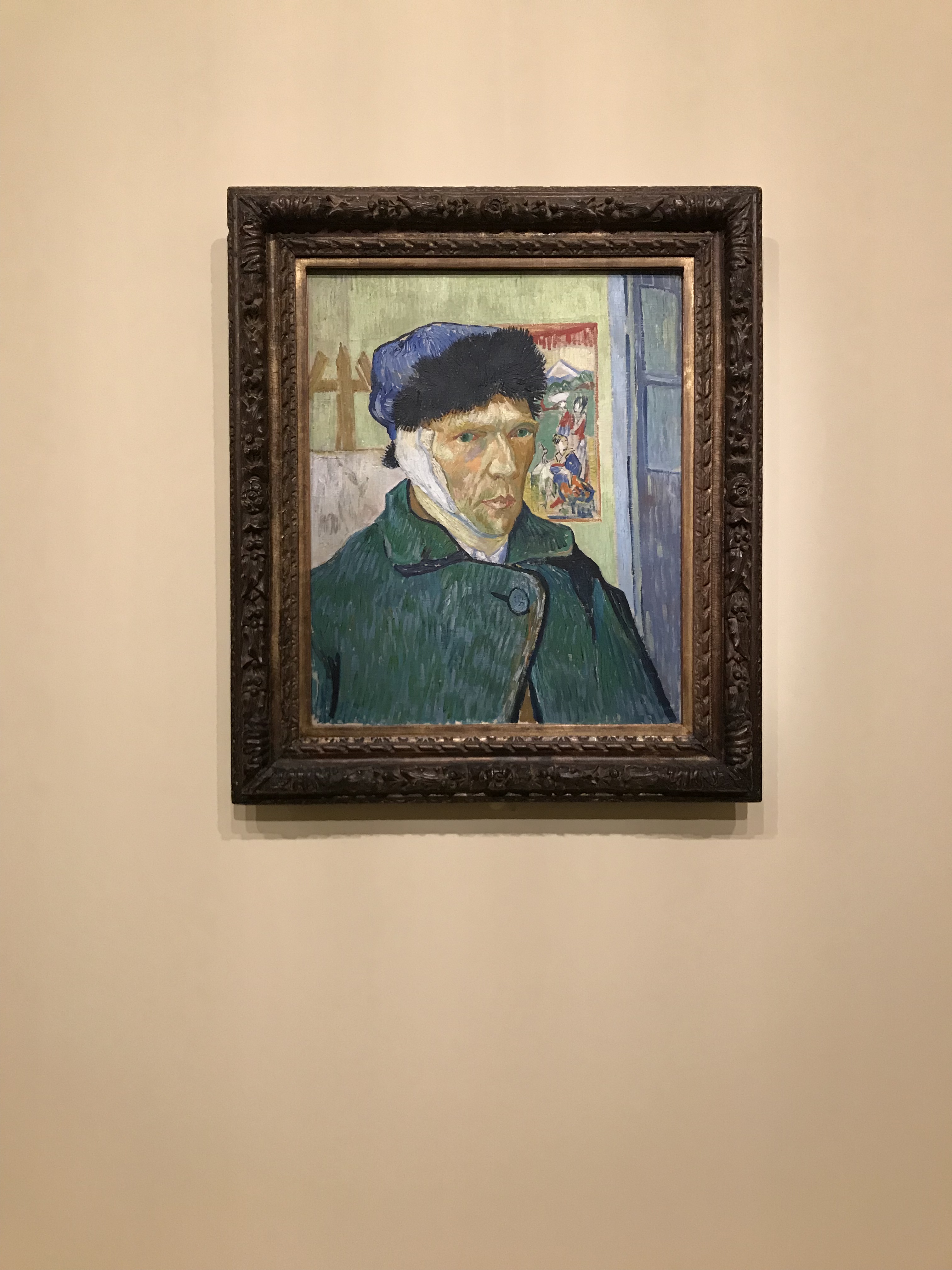Au sous-sol de l’imposant « navire » de la Fondation LVMH, un panel impressionnant de personnalités artistiques se déploie sous nos yeux d’humbles amateurs et amatrices d’art. Ces peintres sont indissociables de leurs tableaux aux thèmes très éclectiques. Alors que Seurat (La femme se poudrant – 1889) et Manet (Bar aux Folies-Bergère – 1882) se penchent sur la vie quotidienne et intime des Parisiens et des Parisiennes, Gauguin (Nevermore – 1897) nous transporte et nous emporte à l’autre bout du monde, tandis que Van Gogh se laisse observer à s’en abîmer les yeux avec son très (trop) célèbre Autoportrait à l’oreille bandée – 1889 !