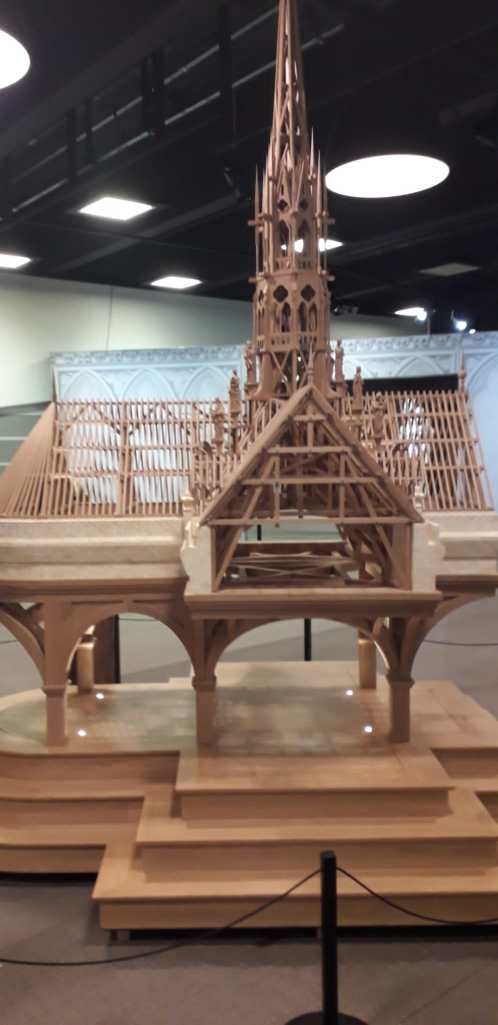 Le plus ? Lors de cette exposition, nous découvrons également que la France recèle des trésors de savoir-faire inestimables. Regroupés sous le nom des Compagnons du Tour de France, ces artisans aux doigts d’or ont démontré leurs extraordinaires talents lors de la construction de Notre Dame au XIIIème siècle. Mais, le plus fascinant est que rien n’a été perdu depuis : tout s’est transmis ! Et c’est cette force technique, historique, stylistique et artistique qui transparaît aujourd’hui à l’occasion de la reconstruction de Notre Dame de Paris. L’ouvrage du « chef d’oeuvre » (la reproduction de la charpente réalisée à l’échelle 1/20e) est le véritable clou de ce spectacle à contempler et à méditer …. et surtout à ne manquer sous aucun prétexte !