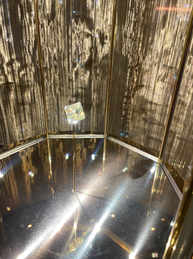 Un coup de coeur ? L’exposition débute avec l’épopée de Soleil d’Or, un diamant de plus de 100 carats présenté au grand public pour la toute première fois … et s’achève avec le monde fastueux de l’exception. En effet, sous une lumière presque céleste, les pièces les plus incroyables telles qu’une broche fleur sertie de diamants et diamants roses, ou des sacs du soir en marqueterie de nacre révèlent toute l’audace et la liberté de la Maison ! Une merveille…