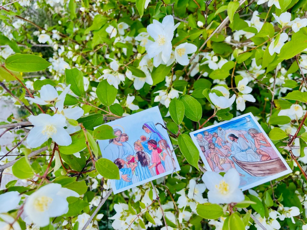 Un coup de coeur ? Pour les illustrations de Joelle d’Abbadie qui cultivent dans l’âme de nos enfants le goût pour la beauté. Regarder avec attention chaque dessin est un plaisir en soi : le tracé pur et les couleurs douces élèvent …! Chaque aquarelle plait au coeur et transmet quelque chose de Dieu… Notre regard caresse nos sens, saisis par la finesse des traits des visages de Jésus enfant, de la Vierge Marie (tout spécialement). Voilà donc un jeu qui évangélise par l’image et qui exalte les vertus de l’enfance !