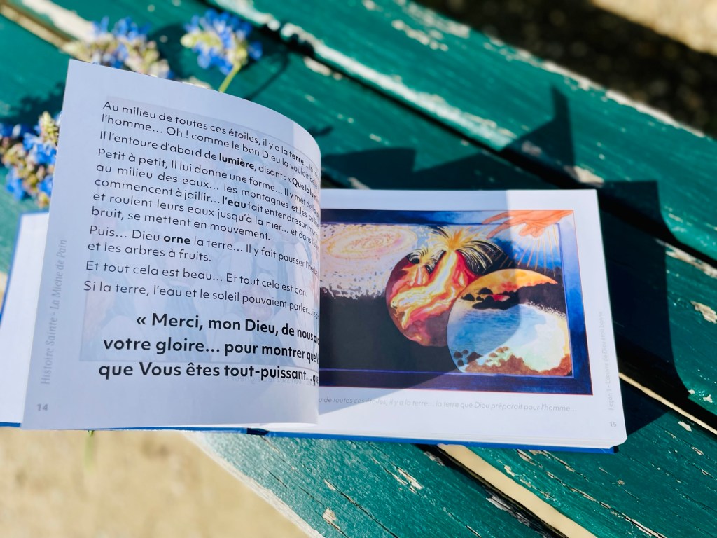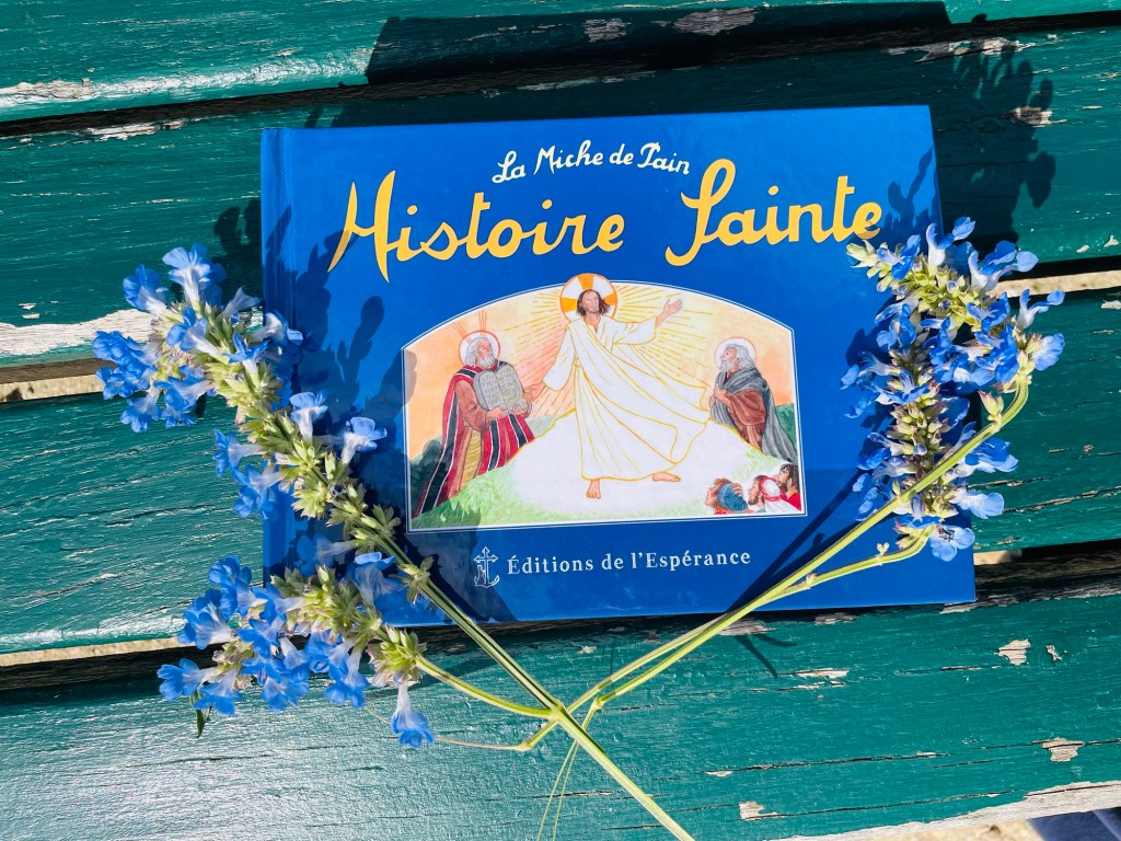 Complétant l’incontournable collection de catéchisme de la Miche de Pain, l’Histoire Sainte est le petit dernier qui vient de ressortir pour la rentrée et qui mérite de trôner dans nos bibliothèques familiales. A feuilleter tous les jours, les semaines ou les mois, ce magnifique ouvrage excelle dans l’art de parler aux enfants et de les éduquer dans la foi. Autant les textes, les dessins que le format sont conçus pour toucher les coeurs de nos bambins (mais aussi le nôtre !)
